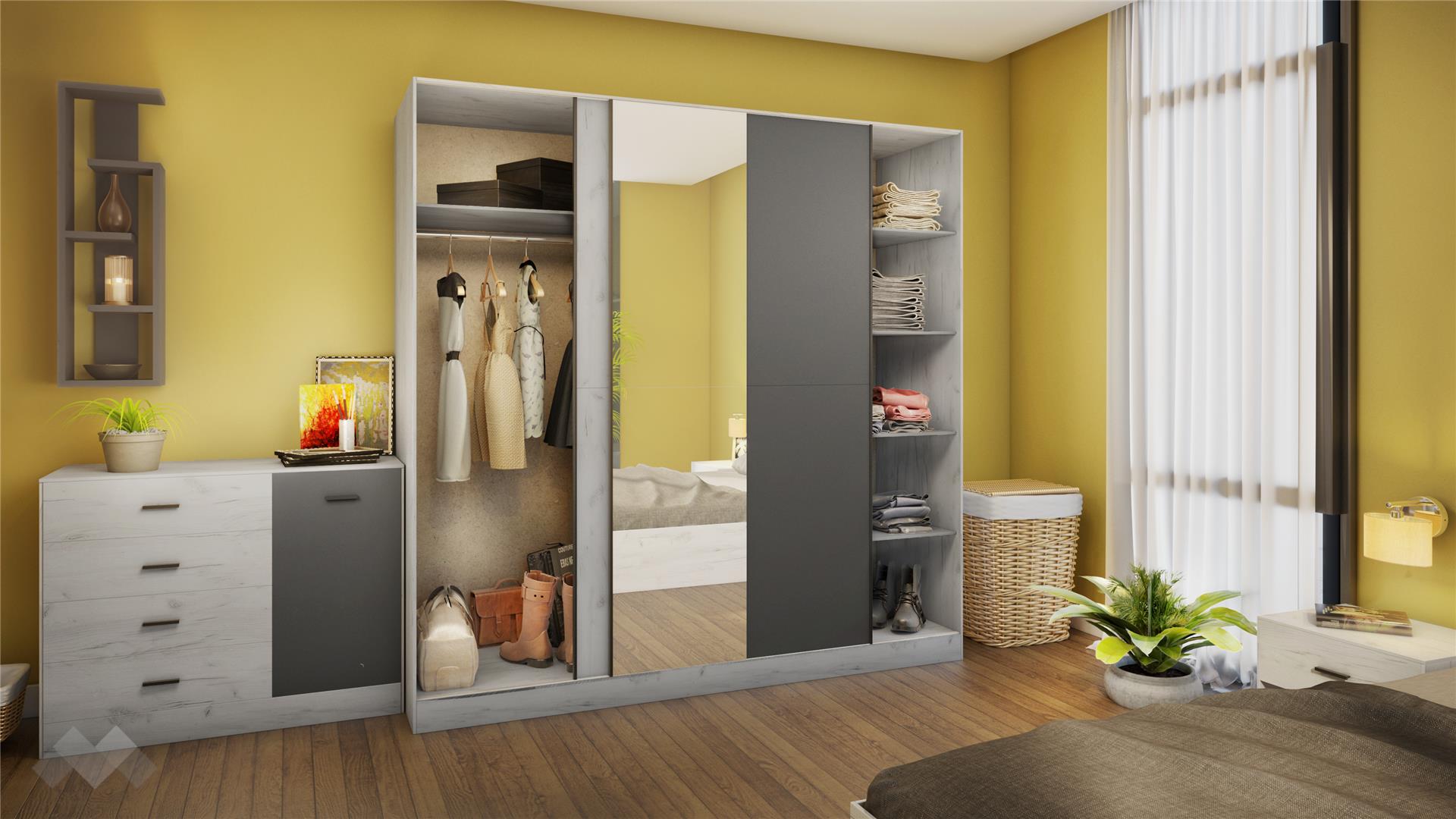 Това е идеалния спален комплект - гардероба е голям и с разпределението, което търсихме. Останахме много доволни. Доставката беше буквално на следващия ден!