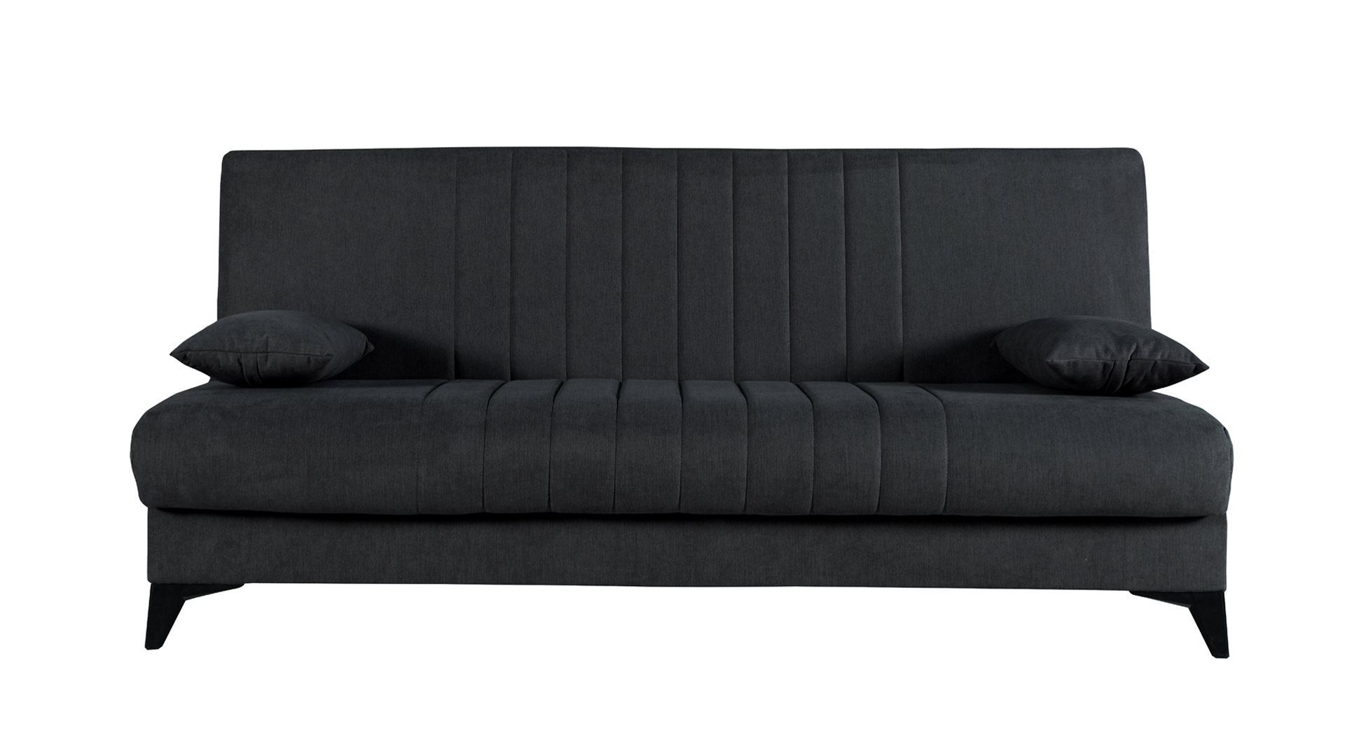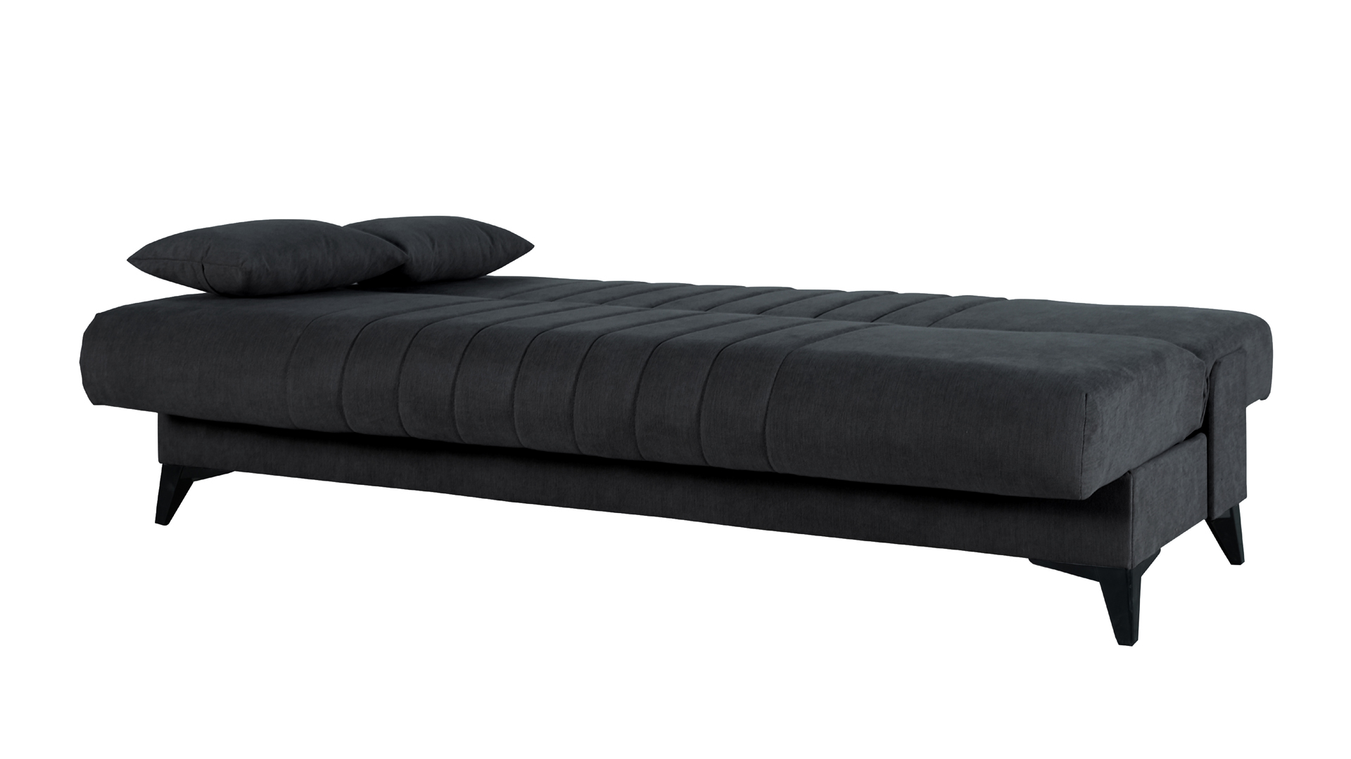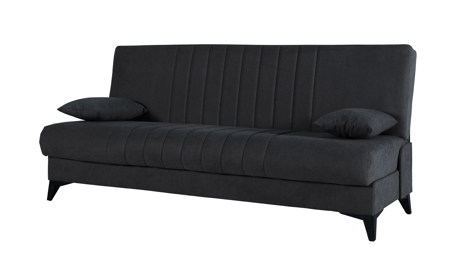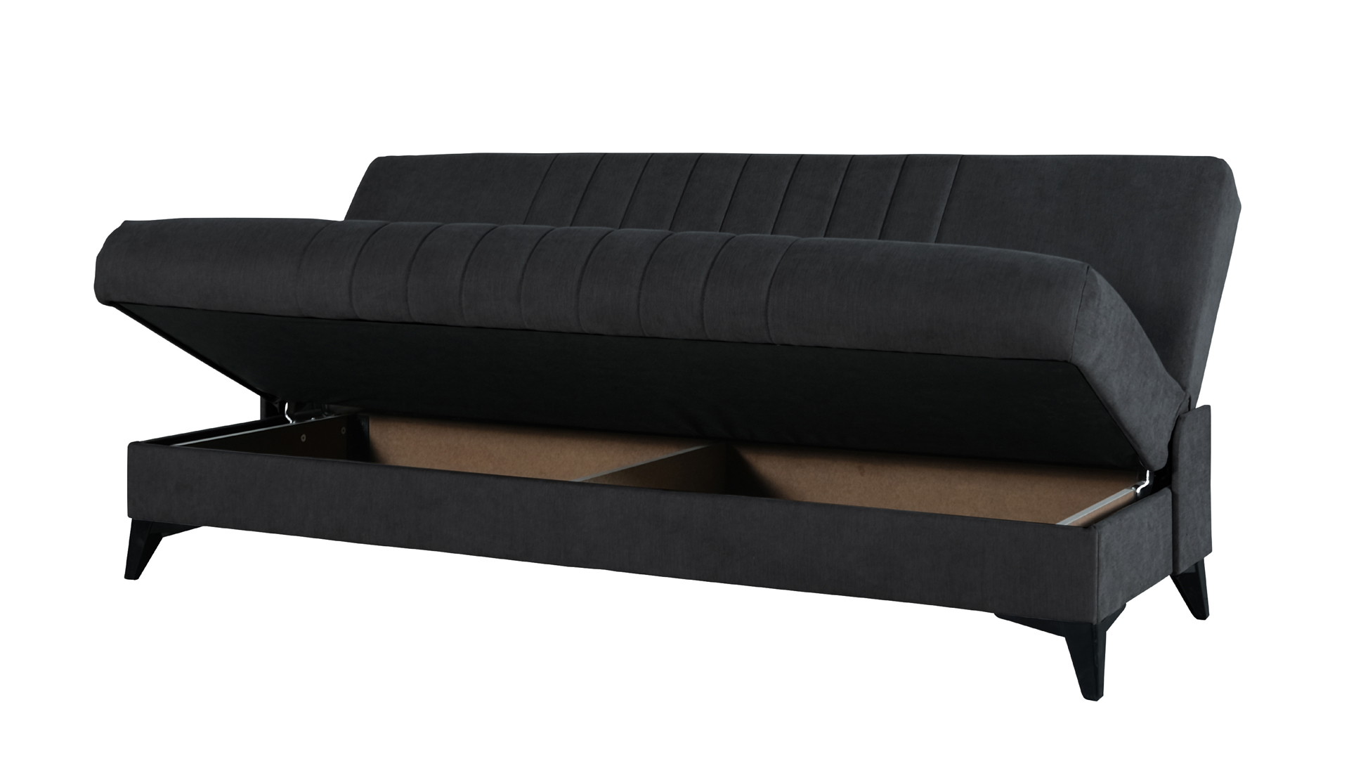 Подлакътниците са оформени с възглавници, които лесно се отстраняват при нужда, за да разширят използваемата площ. Това прави канапето още по-функционално и удобно при посрещане на гости или при необходимост от кратка почивка през деня. Просторната ракла под седалката осигурява допълнително място за съхранение на спално бельо, завивки и други вещи.