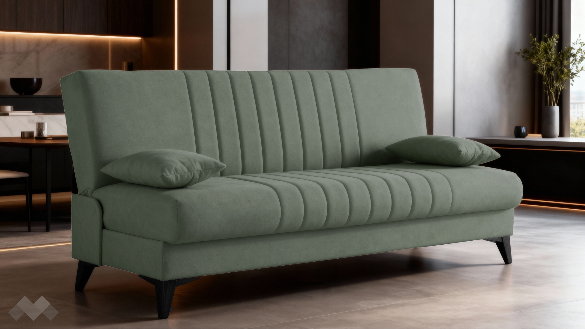 Механизмът клик-клак позволява лесно и бързо трансформиране от диван в легло. Площта за сън е достатъчно широка, за да осигури пълноценен нощен сън или комфортна следобедна дрямка. Вътрешната конструкция с пружинен пакет Бонел гарантира комфорт при сядане и по време на сън, като осигурява добро разпределение на тежестта и мекота.