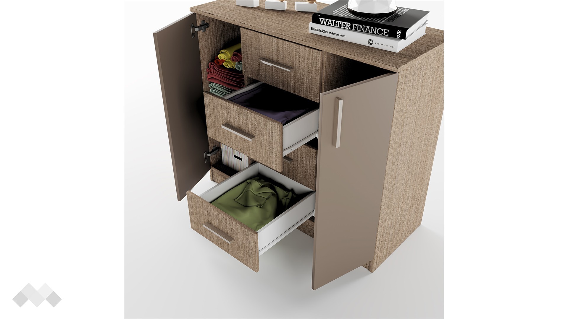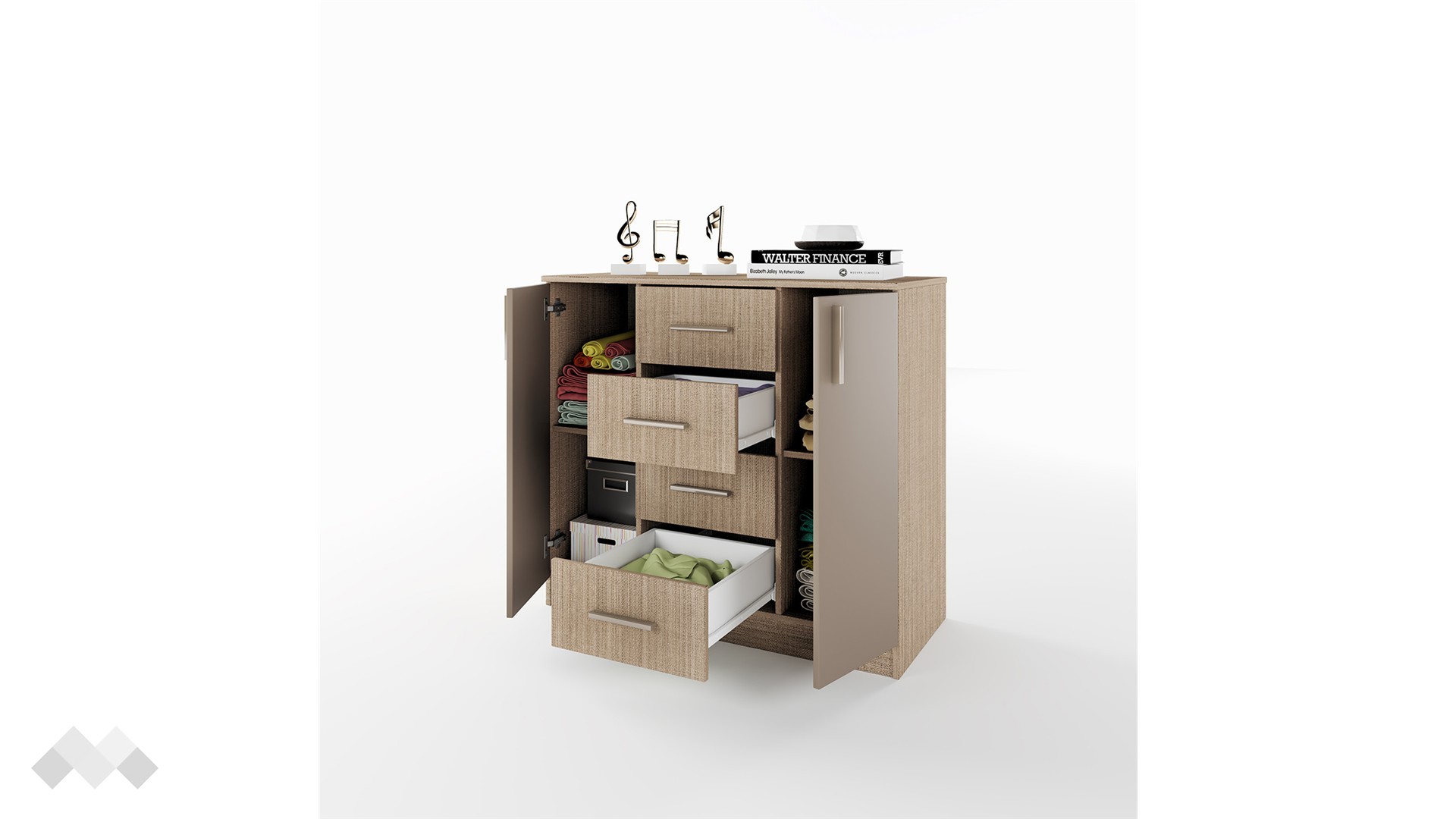 На твое разположение са четири чекмеджета и два затворени шкафа, които са разделени с рафтове. В тях ще намериш достатъчно място за твоите дрехи, бельо, малки ел. уреди, аксесоари или други необходими за теб вещи. Горният плот можеш да използваш за подреждане на красиви декорации, сувенири, любими книги, козметика или други неща, които да ти бъдат винаги под ръка.