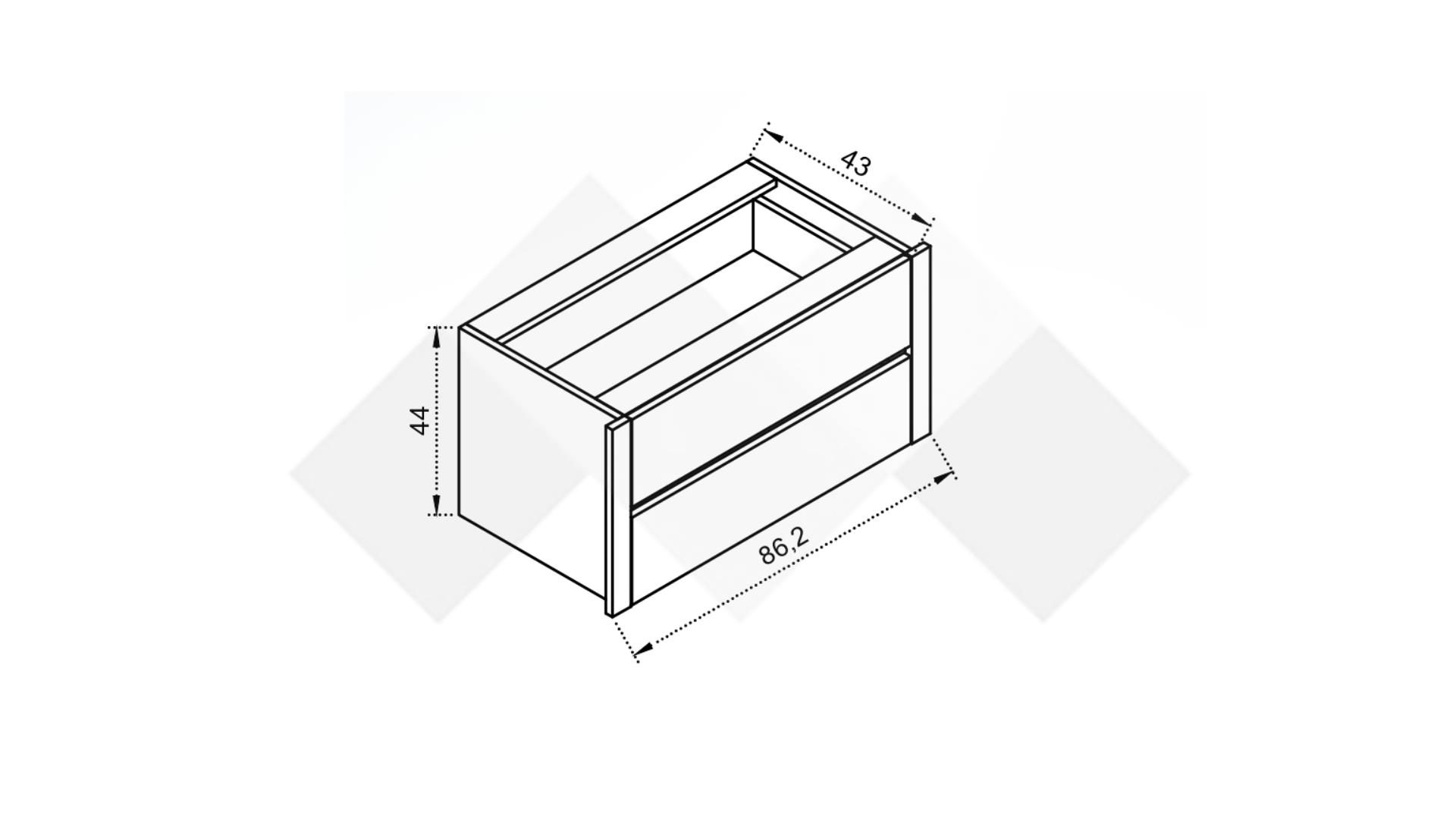 Д: 86,2 см Ш: 44,8 см В: 44 см