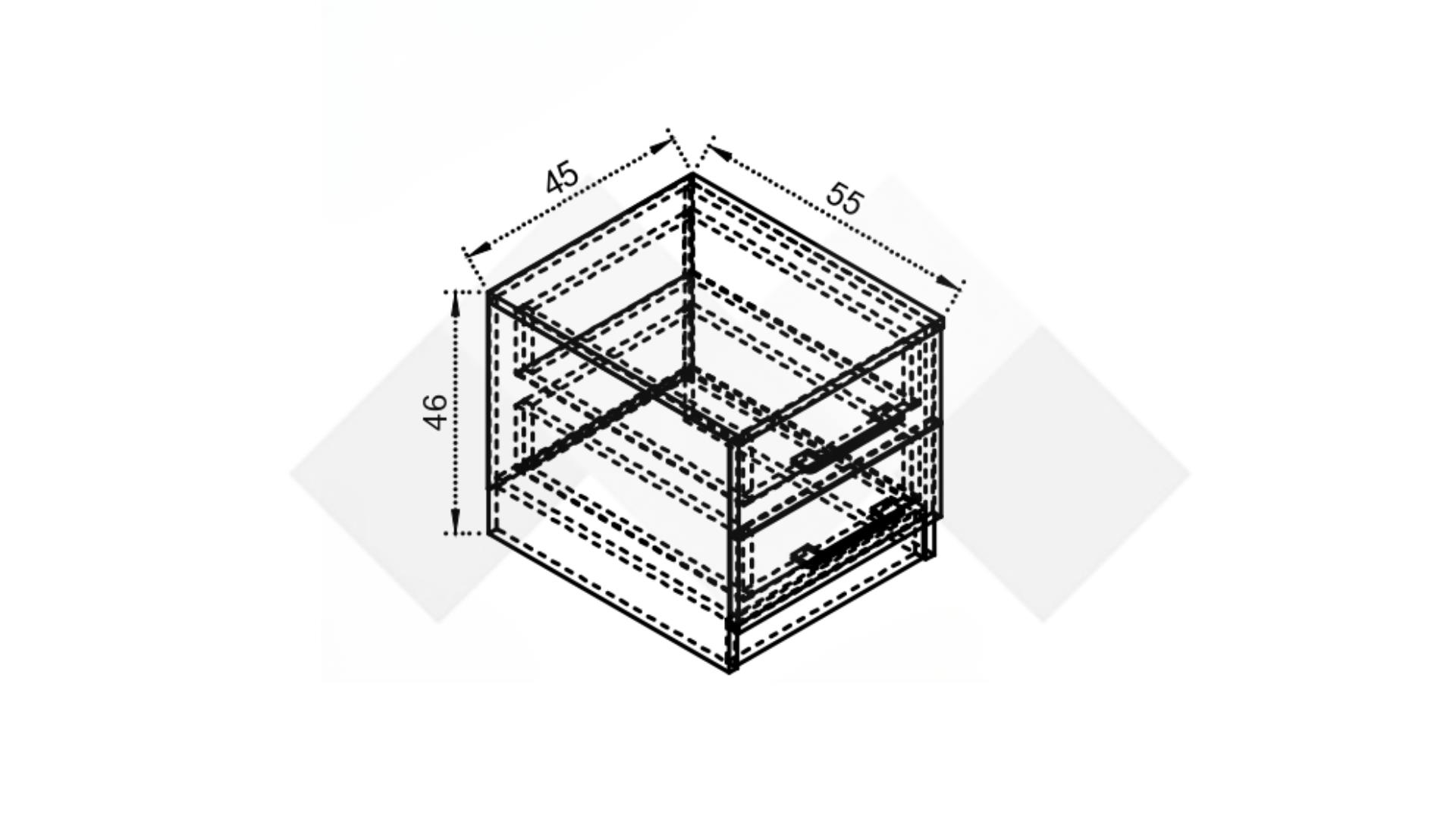 Шкафът разполага с две просторни чекмеджета, осигуряващи достатъчно място за съхранение на дребни лични вещи, като очила, електронни устройства и други, които да са ти винаги под ръка. Чекмеджетата са снабдени с телескопични водачи, което прави изтеглянето им леко и стабилно, като издържат и при по-голямо натоварване.