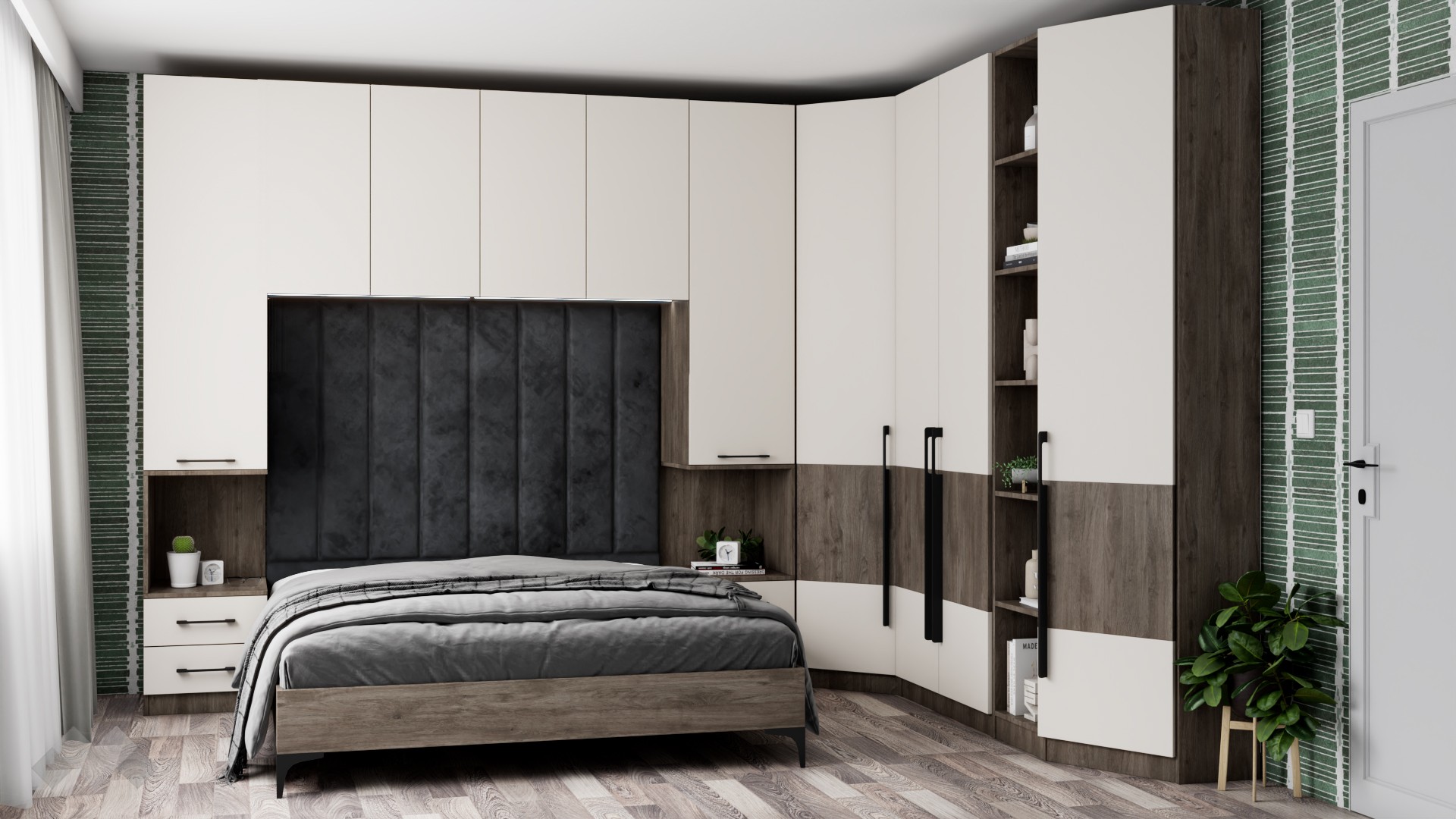 ⭐ Предимства: ✓ 18 мм ПДЧ ✓ спалня за матрак 160/200 ✓ тапицирана табла ✓ гардеробна система ✓ механизъм за плавно затваряне ✓ надстройка с LED осветление ✓ модерен и функционален дизайн