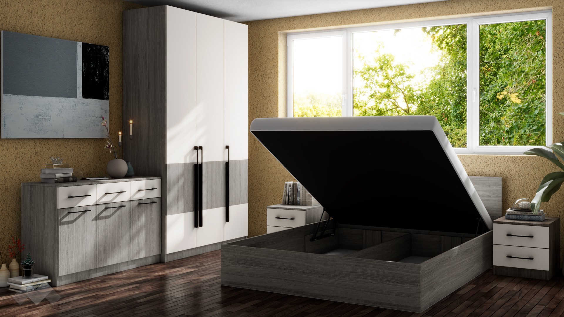 Създай комфортна и стилна атмосфера в спалнята си със спален комплект Комо К4– практично решение, което обединява удобство, изискан дизайн и функционалност.