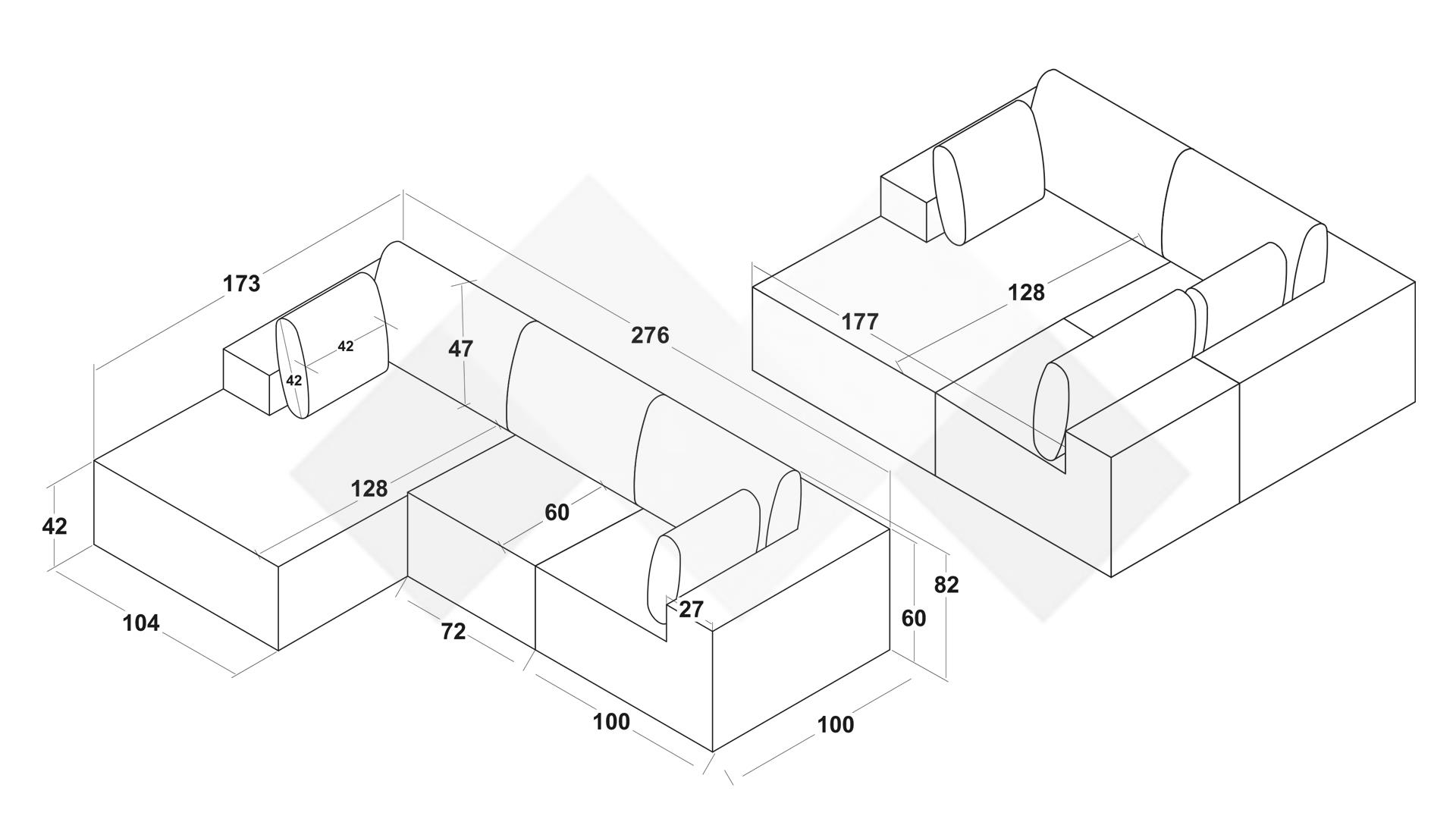 Компресираният ъглов диван Компакт е практично решение за дома, създадено с мисъл за удобство, лекота и адаптивност. Моделът се състои от три отделни модула, които лесно се комбинират в завършен ъглов диван или могат да бъдат пренареждани според нуждите и пространството.