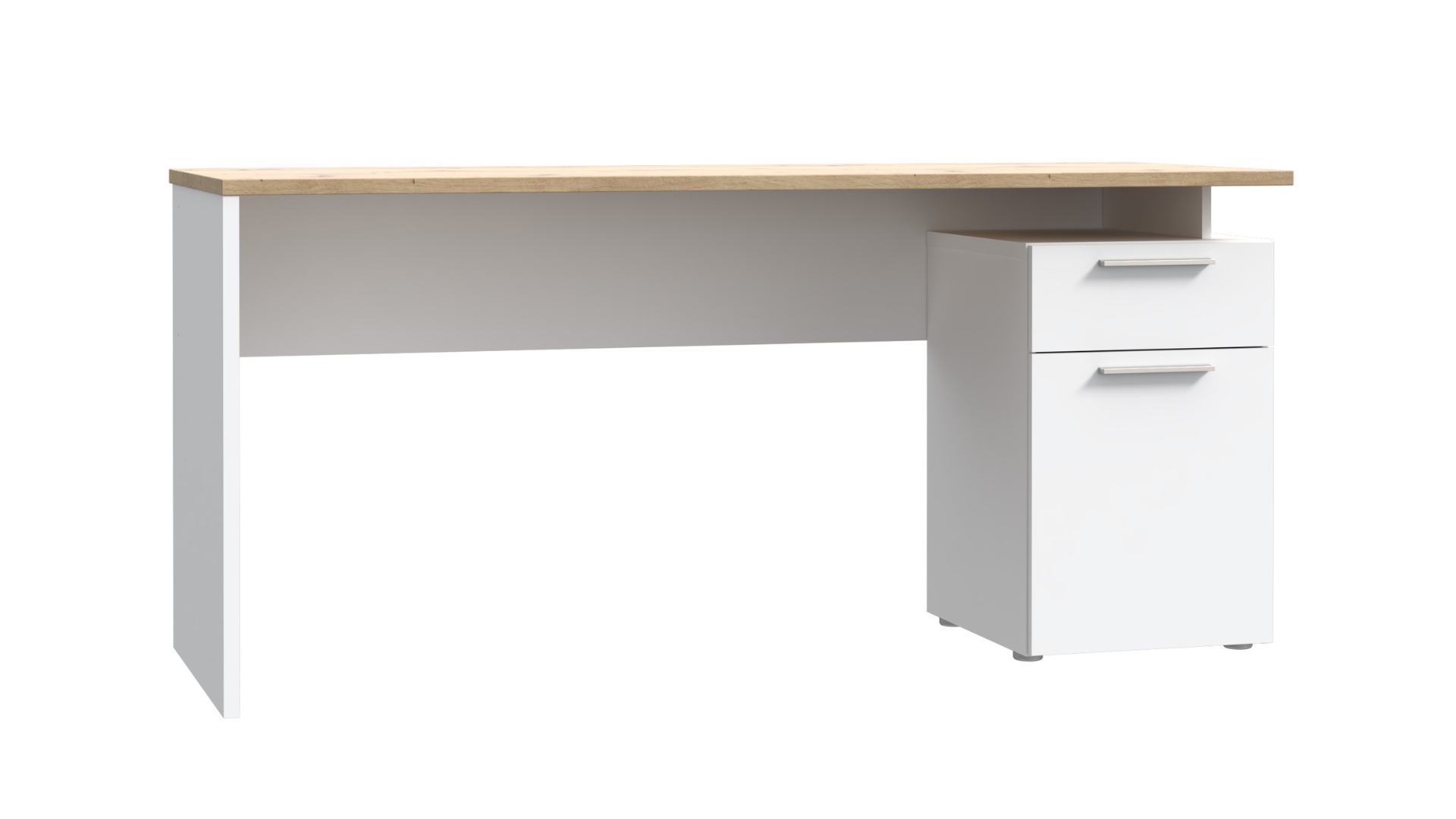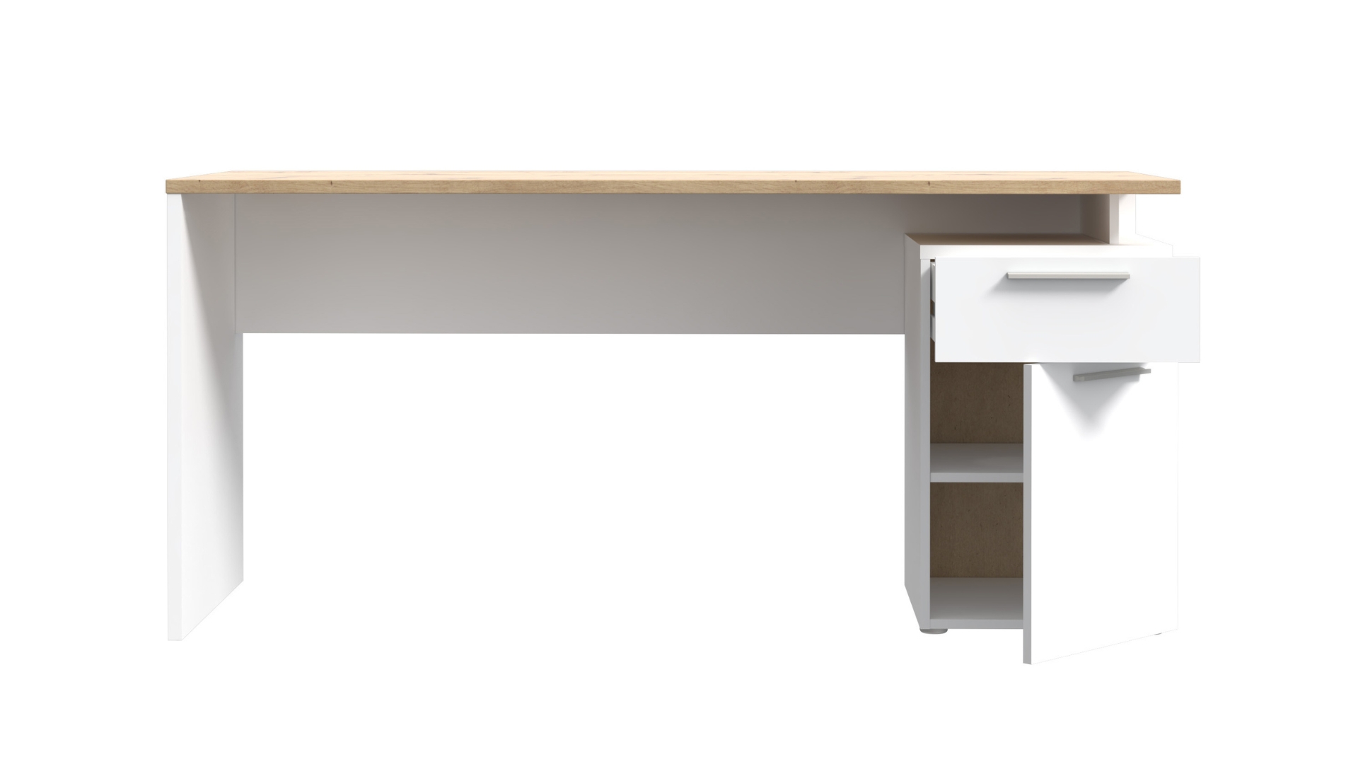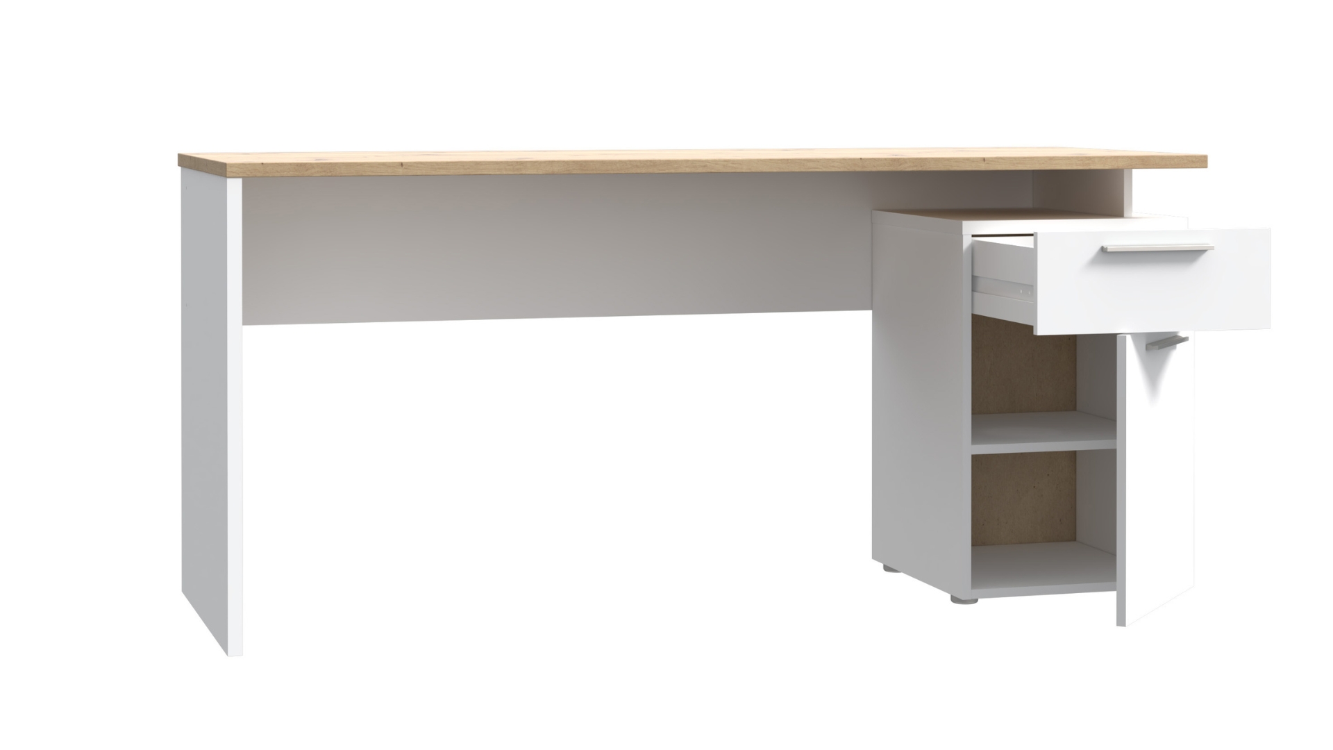 Бюрото разполага с практичен шкаф, в който има рафт за подредено съхранение на папки, документи или лични вещи. Допълнителното чекмедже е перфектно за дребни принадлежности, които трябва да бъдат винаги подръка.