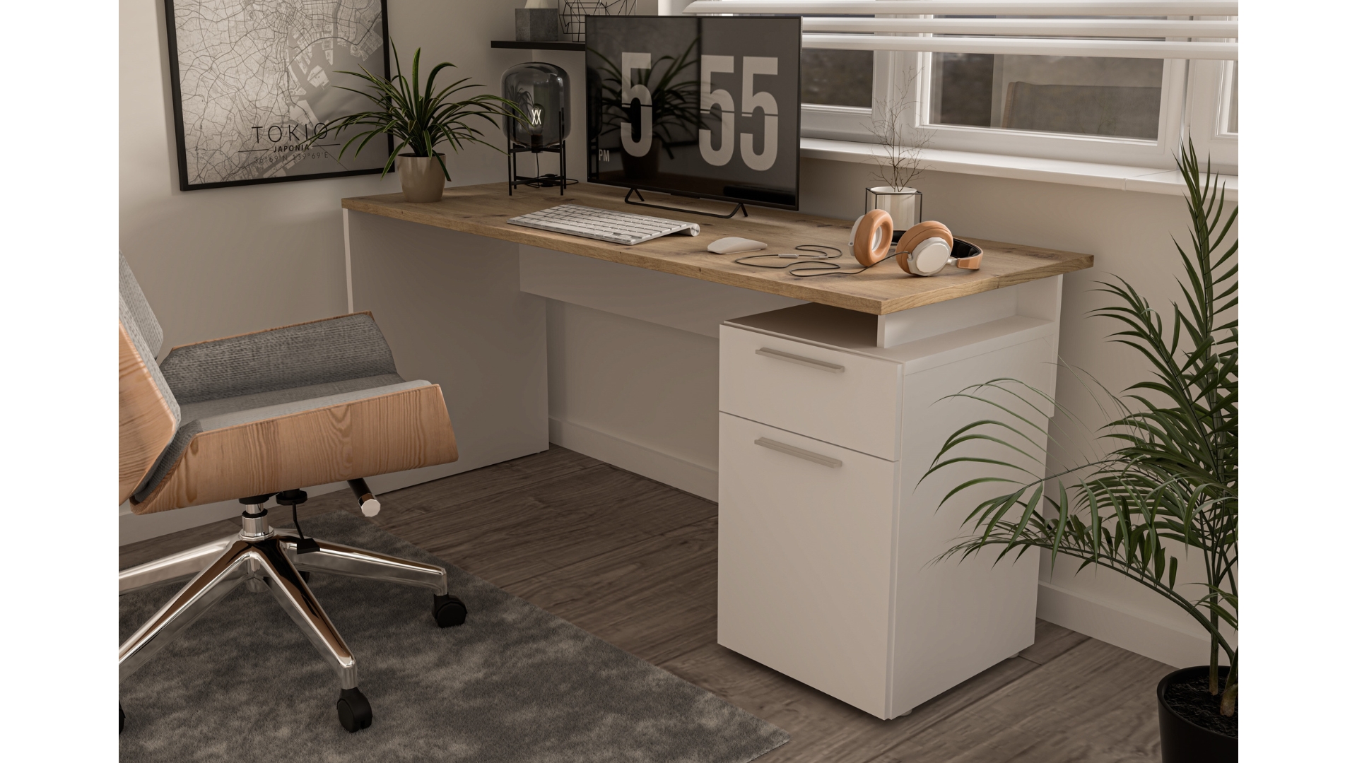 Със своята продълговата форма и добре балансирани размери, бюро Коста осигурява достатъчно работно пространство, без да заема излишно място. Стилният му силует и неутралната визия позволяват лесна комбинация с различни интериорни стилове.