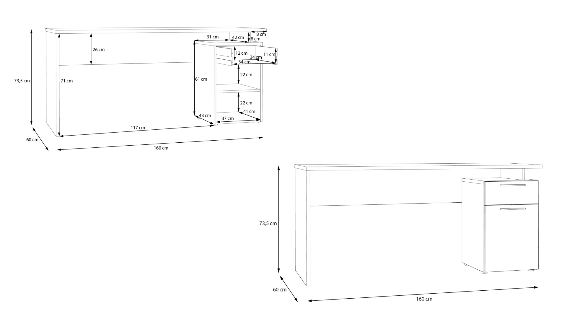Изработено от комбинация 15 мм ПДЧ и 22 мм ПДЧ, бюрото се отличава със стабилна конструкция и изчистен модерен силует, който се комбинира лесно с различни стилове мебели.
