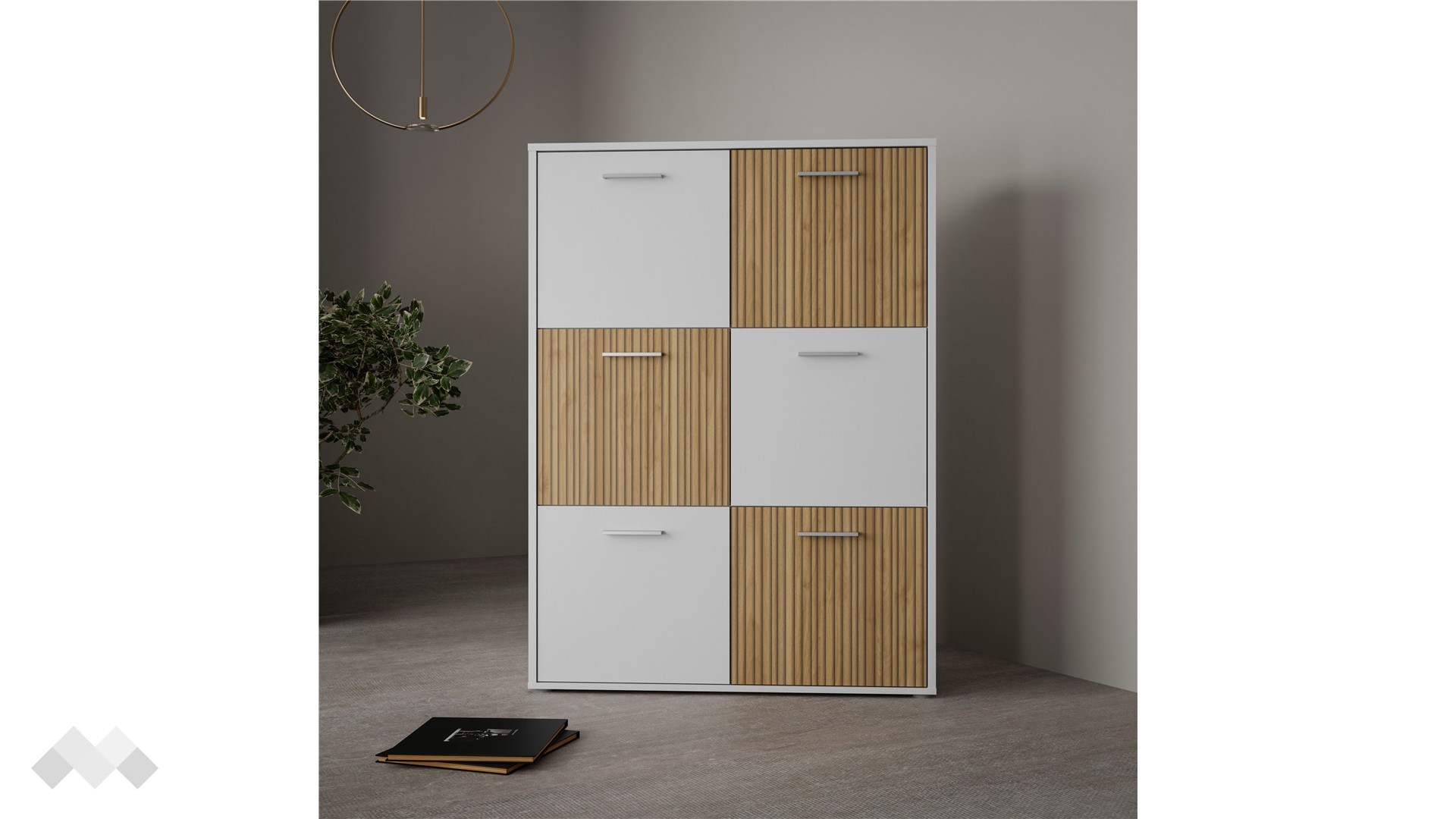 Изработен от висококачествено ПДЧ – корпусът е от 18 мм, а вратите от 15 мм – шкаф Куадро гарантира дълготрайност и устойчивост на износване, като запазва елегантния си вид с минимална поддръжка. Можеш да го поставиш в спалнята за допълнително място за дрехи, във всекидневната за подредба на аксесоари или в коридора за обувки и принадлежности.