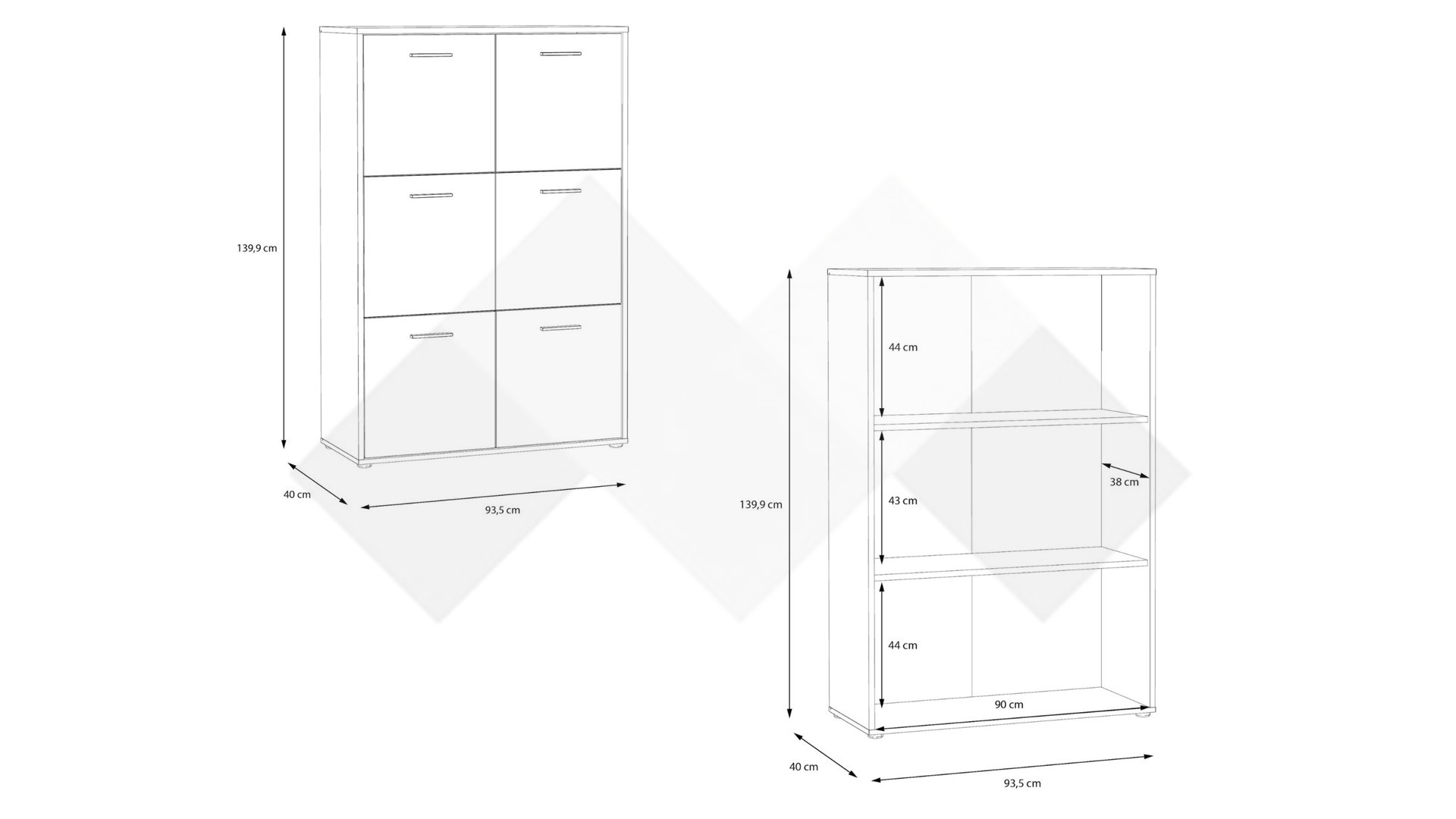 Д: 93.5 см Ш: 40 см В: 139.9 см