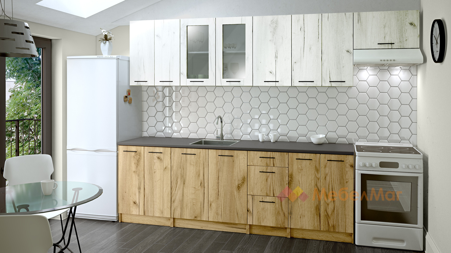 КухняНикея 240 Н4златен дъб с дъб крафт бял прави