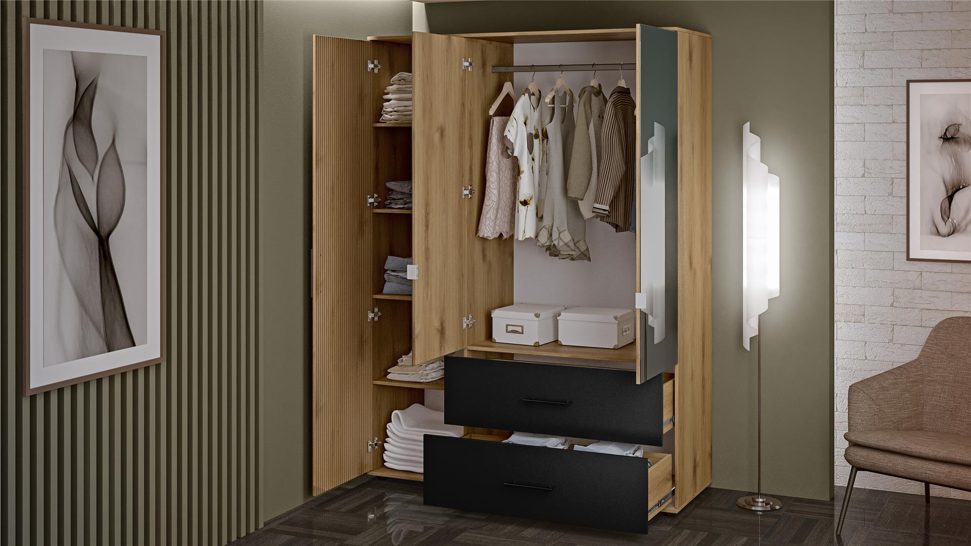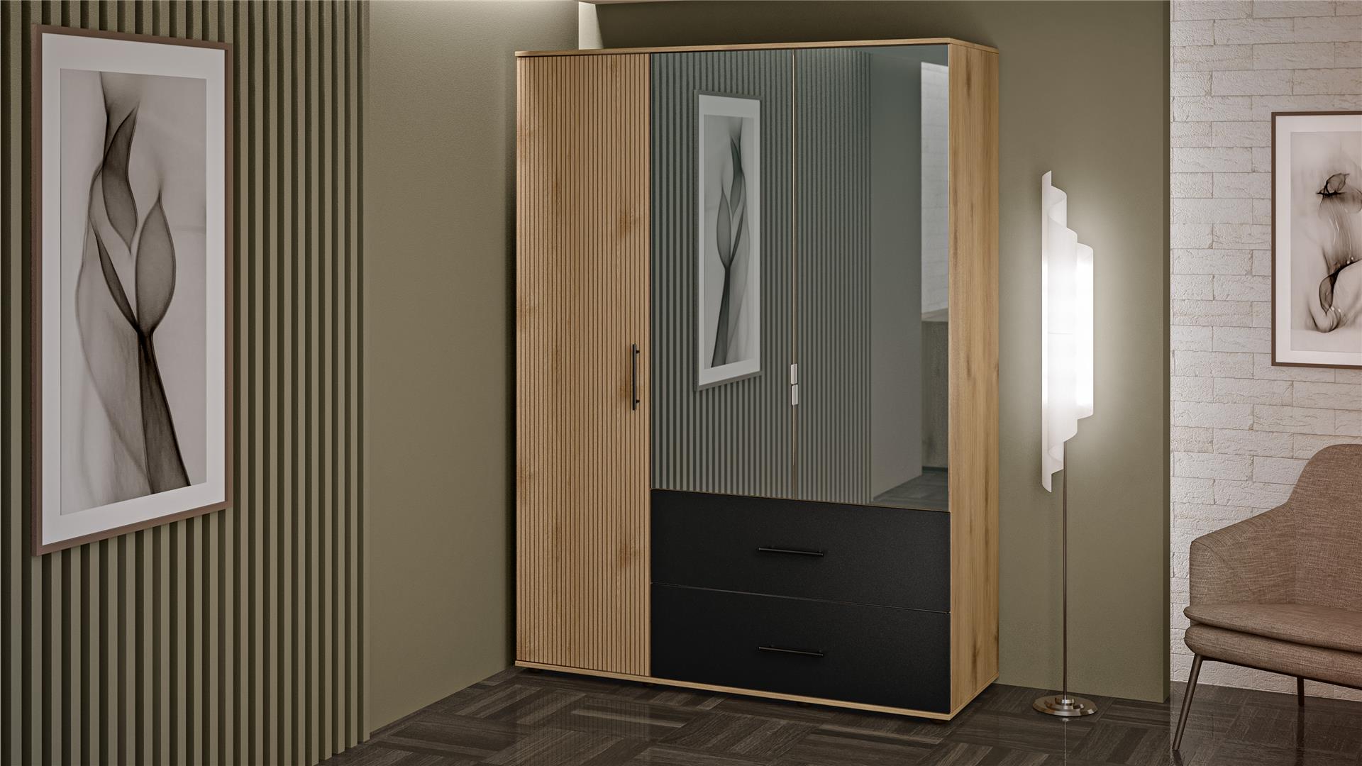 ГардеробЛамеладъб канела с дъб ламела и черно шагре трикрилни