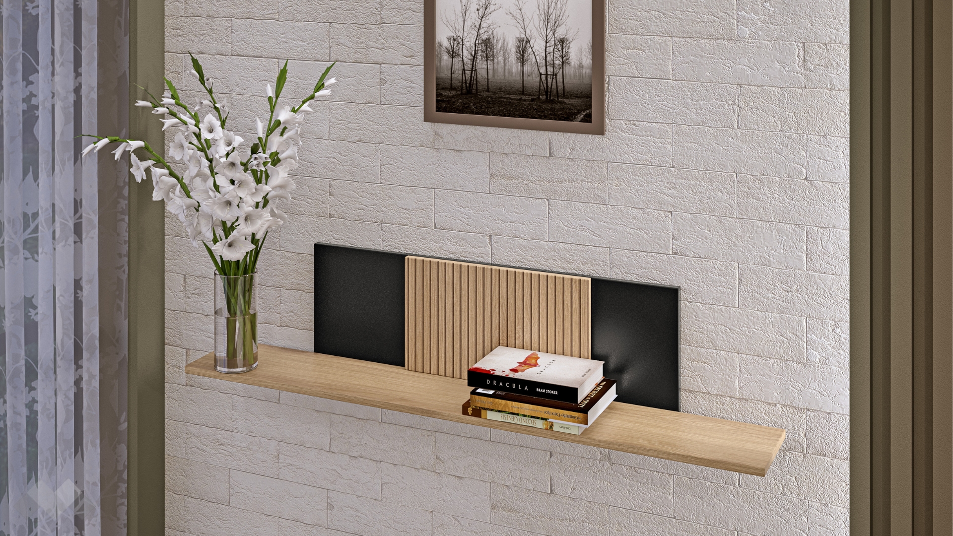 Добави модерен акцент и практично решение към интериора с етажерка Ламела. Със своето минималистично излъчване и декоративен заден панел в контрастни цветове, тя е чудесен избор за всекидневната, коридора или спалнята.