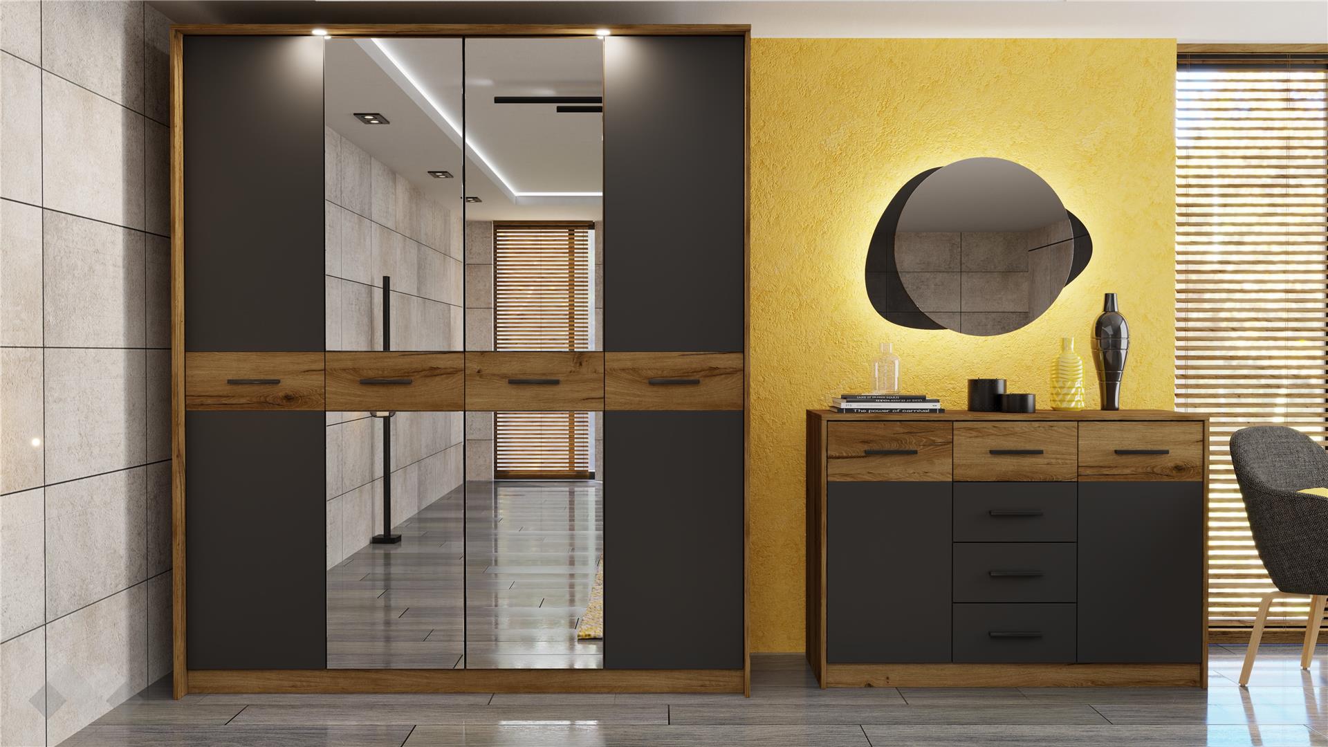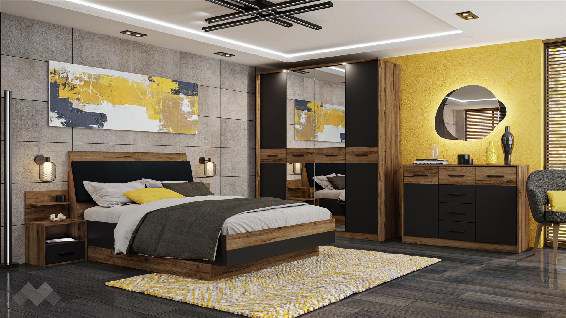 Спален комплектЛегриякафяв дъб пиемона с черно шагре