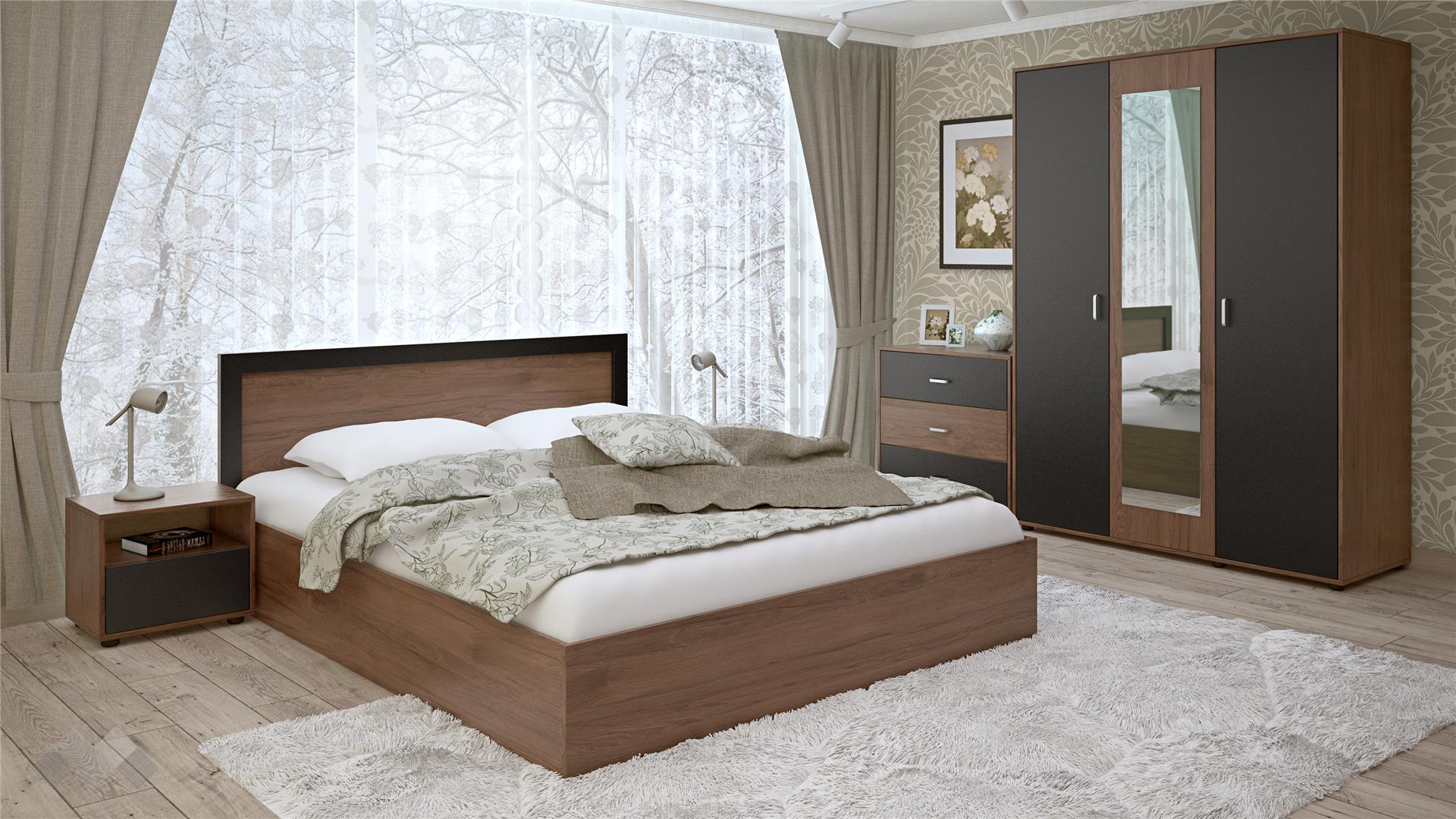 Спален комплектЛетисия Lтъмен кедър с черно шагре