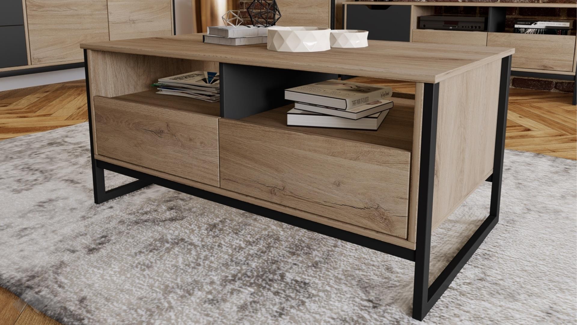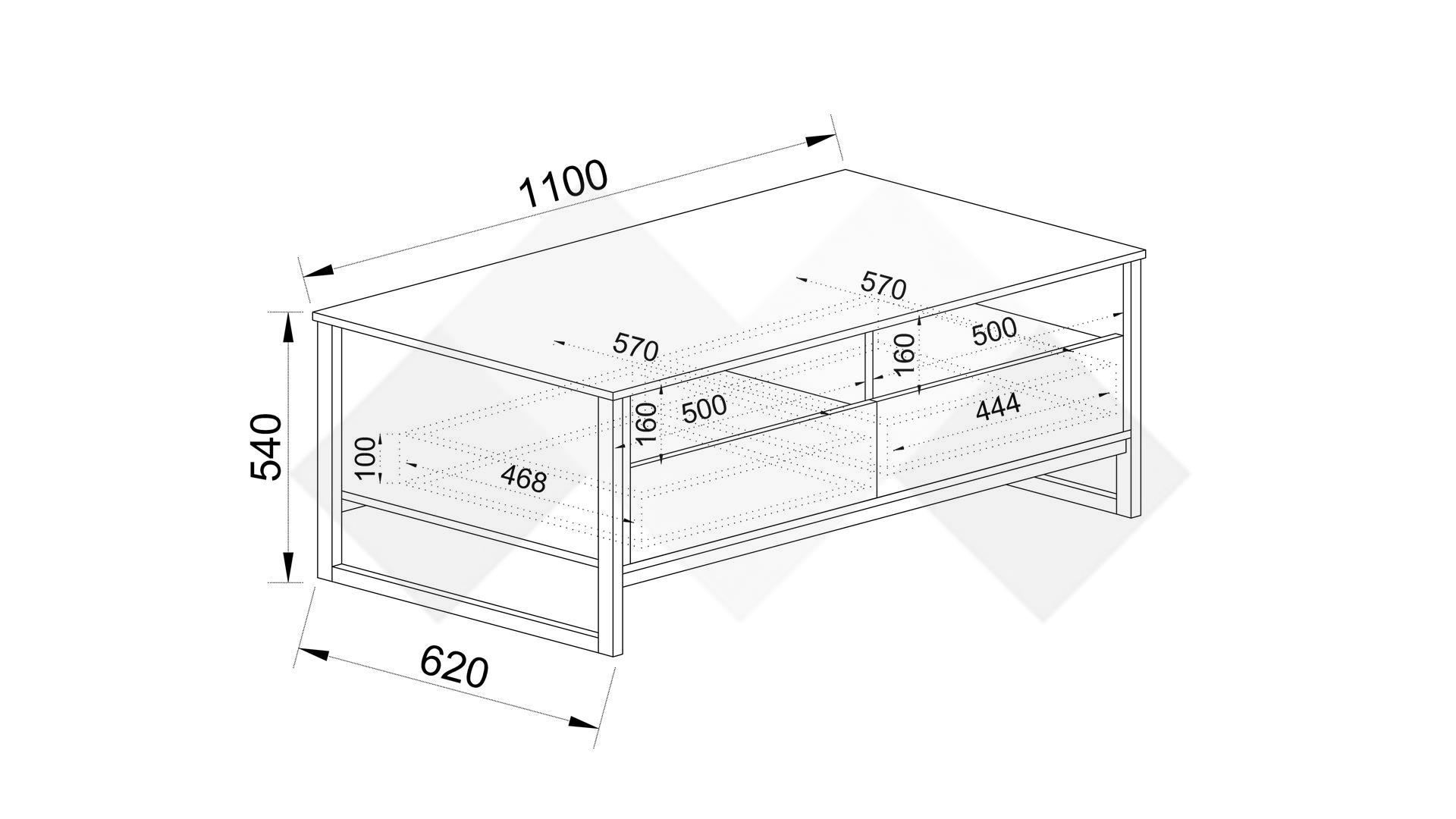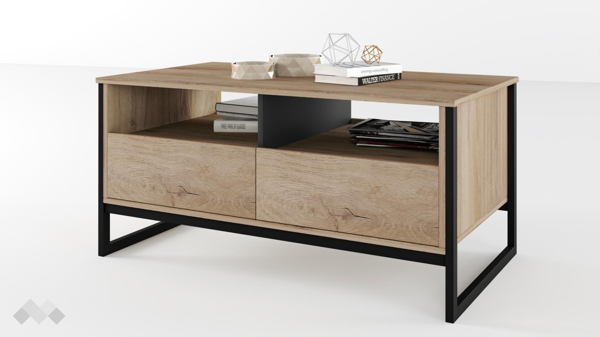 Холна маса Лина е компактна масичка, оборудвана с два отворени рафта под плота и две чекмеджета, които са идеални, когато трябва да разтребиш масичката преди гости, или просто да съхраняваш ежедневни вещи под ръка. Рамката, която служи за крака на холната маса Лина, я поставя на удобно разстояние от пода за по-лесно почистване.