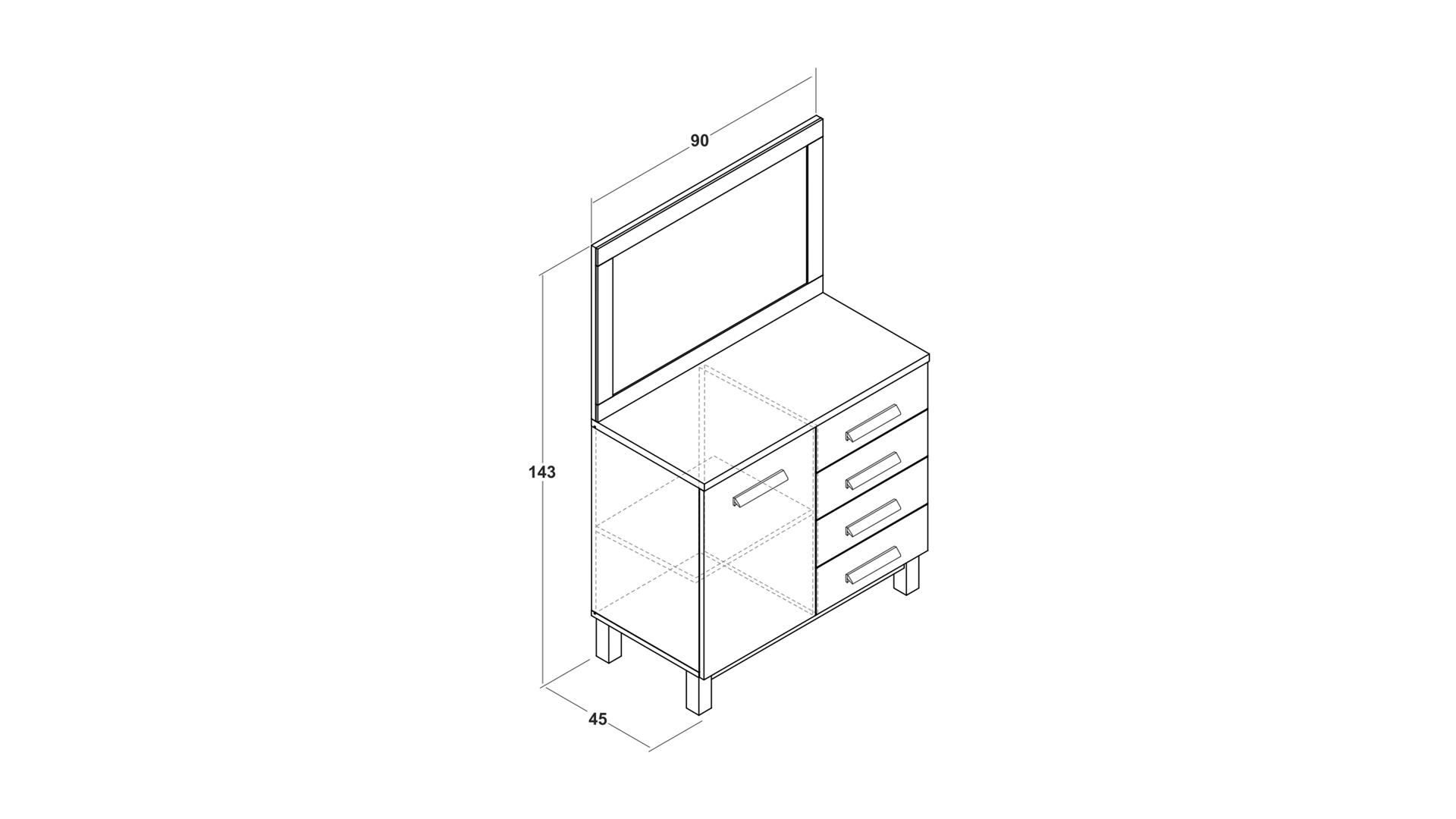 ⭐ Предимства: ✓ 18 мм ПДЧ ✓ 4 чекмеджета ✓ шкаф с рафт ✓ огледало ✓ компактен и практичен ✓ модерен дизайн ✓ качествена изработка