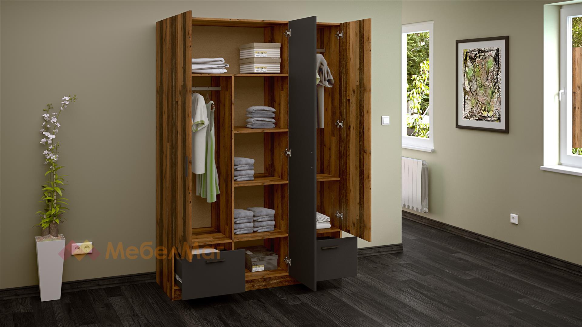 Създай стилна и уютна атмосфера в спалнята си с гардероб Лориен. Този модел съчетава изчистен и модерен дизайн с практично разпределение, което ще удовлетворява и най-високите изисквания за организация и комфорт.