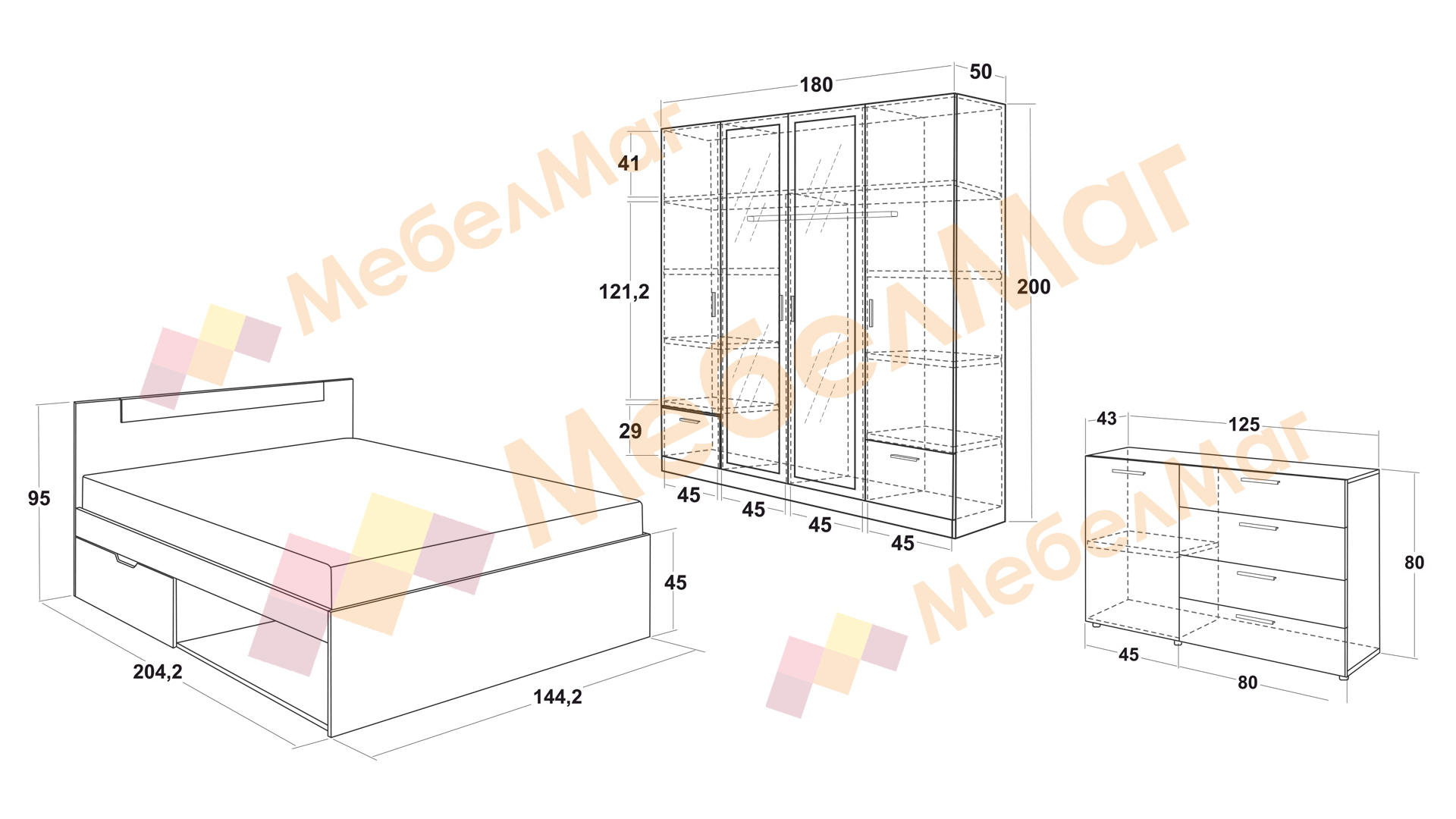 ✓ Легло с 2 чекмеджета ✓ Четирикрилен гардероб ✓ Скрин с 4 чекмеджета ✓ Модерен дизайн ✓ Качествена изработка ✓ 16 мм ПДЧ