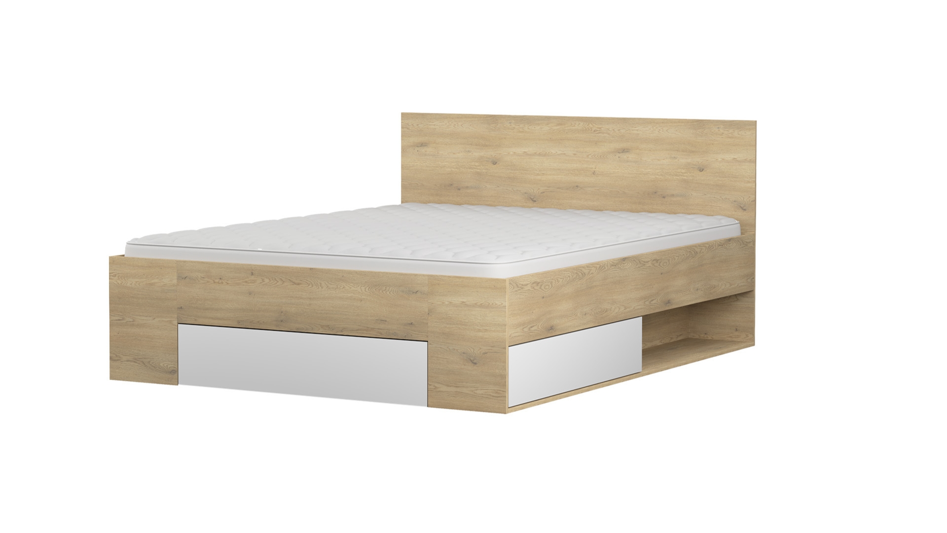 Едно от основните предимства на спалня Лорис са двете вградени чекмеджета, разположени в основата. Те предоставят изключително удобно и дискретно място за съхранение на спално бельо, одеяла, дрехи или други вещи, оптимизирайки пространството във вашата спалня.Второто е, че е подходяща за стандартен размер матрак 160/200 - удобство и компактност в едно.