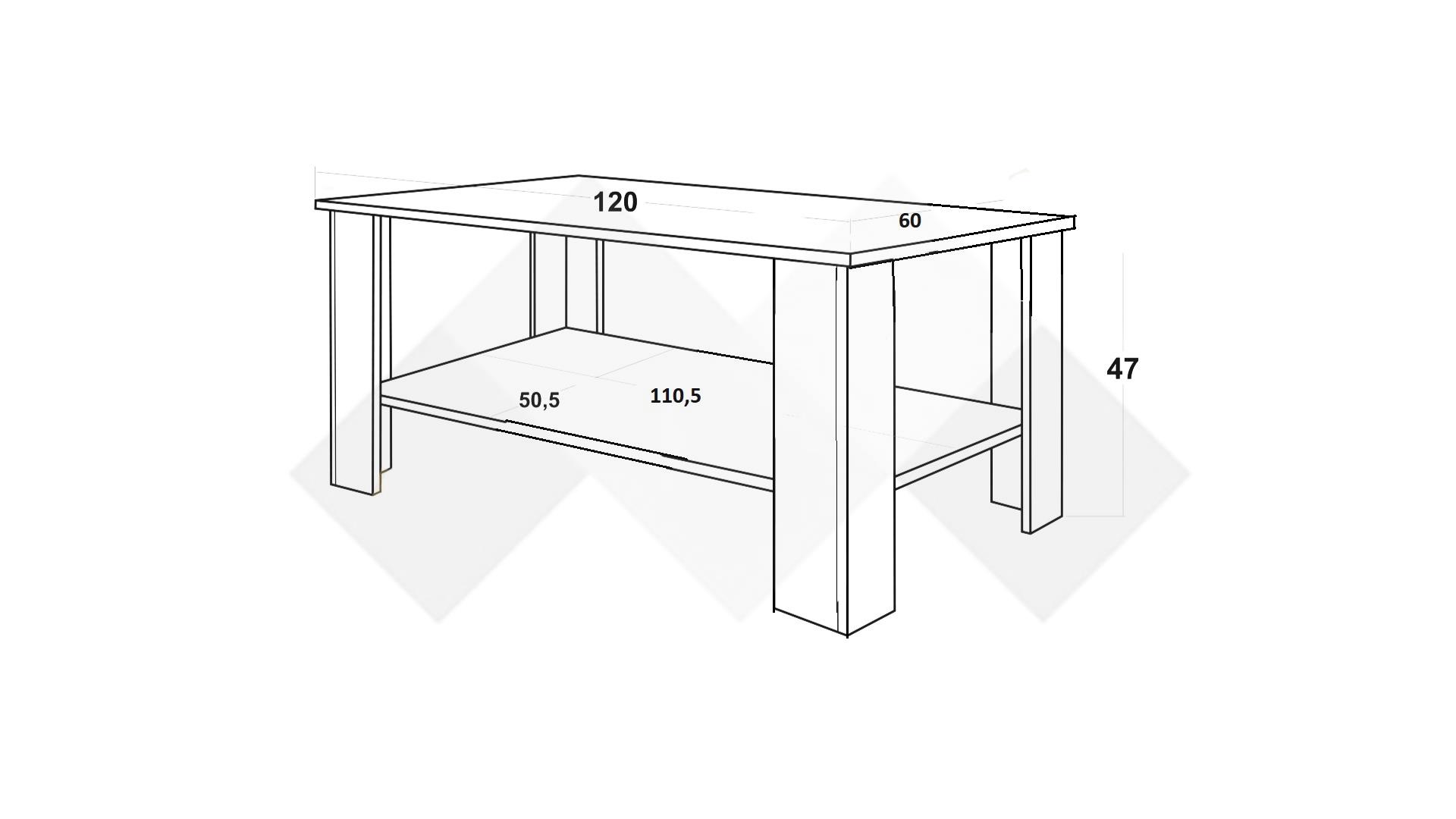 Д: 120 см Ш: 60 см В: 47 см