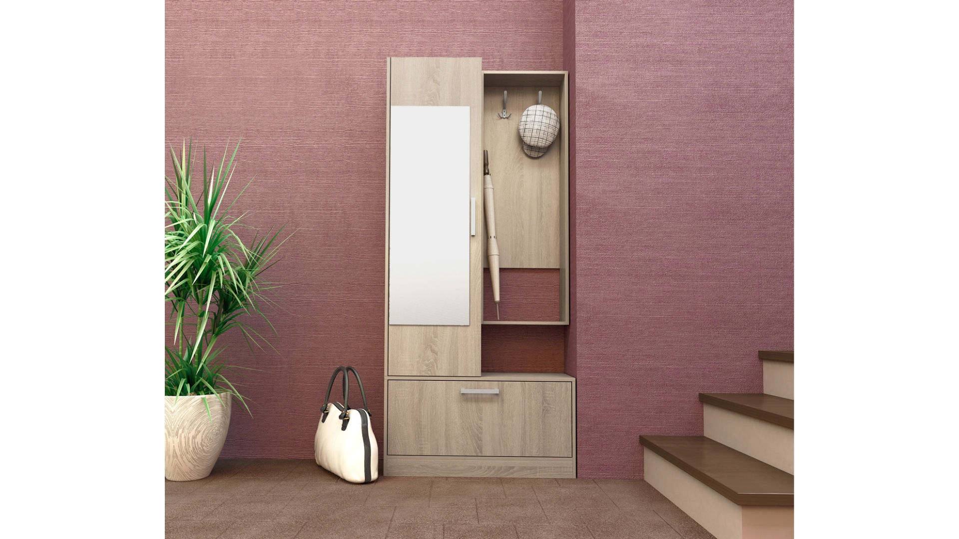 ⭐ Предимства: ✓ елегантен дизайн ✓ модерен декор ✓ огледало ✓ закачалки ✓ открит рафт ✓ гардероб ✓ шкаф за обувки