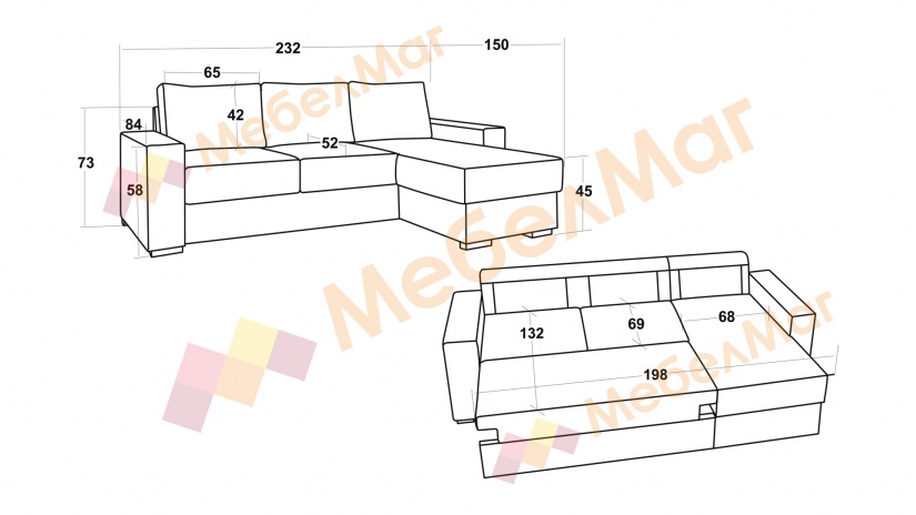 Ъглов диван Маги притежава всички удобства, които се очакват от диван, и е перфектна комбинация за отдих, съхранение и сън в едно компактно и стилно решение за твоя дом. Получаваш и три големи възглавници, които ще ти осигурят оптимална опора при седене. Калъфите на възглавниците са сваляеми, което ги прави удобни и лесни за поддръжка.