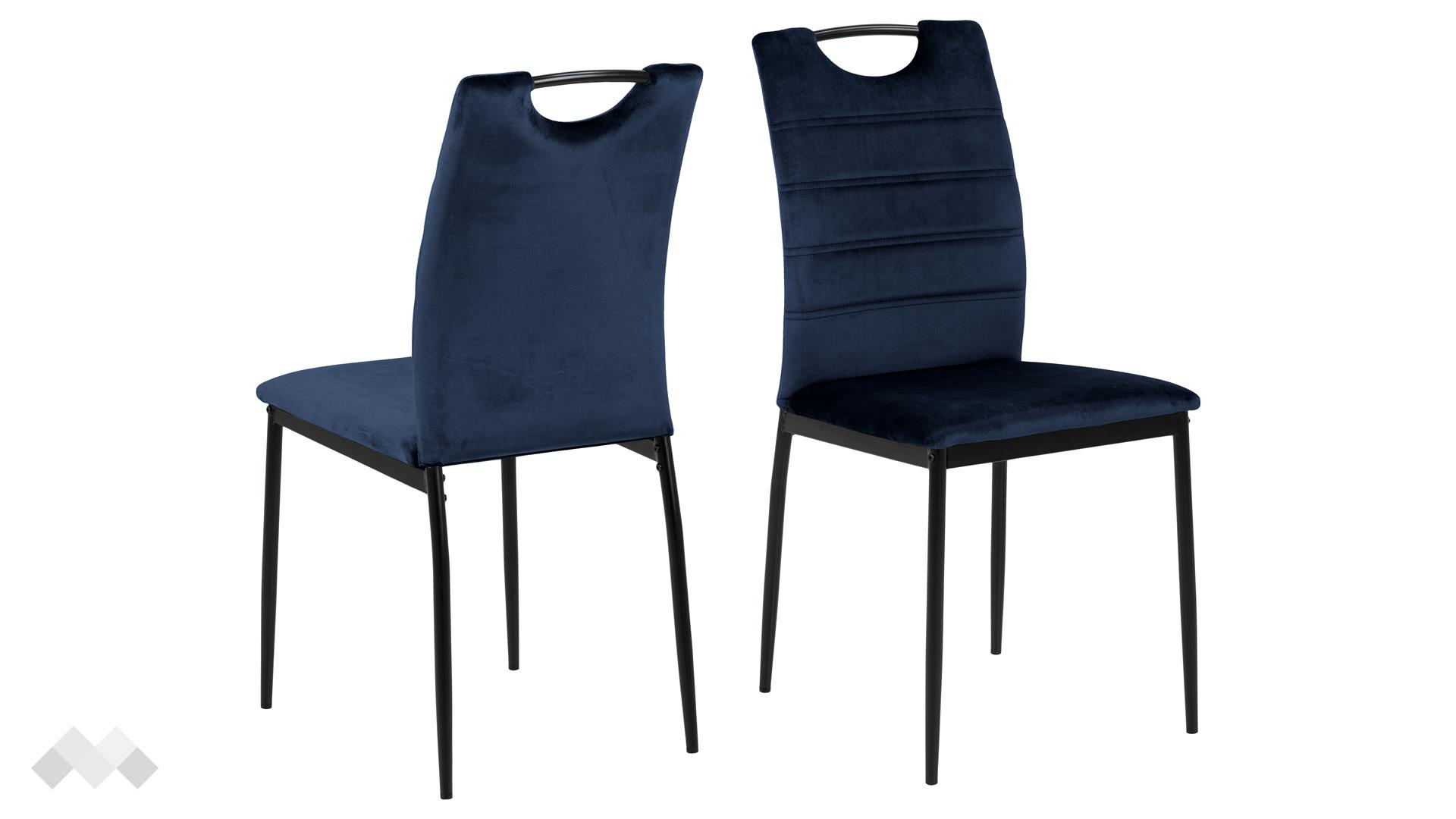 Изчистеният силует, синият цвят и детайлите издигат този стол на следващо ниво. Дръжката и хоризонталните шевове на облегалката придават съвременен характер на модела. Меката, подплатена седалка с висока облегалка прави стола удобен за седене около масата по време на вечерите със семейството и приятелите ти. Седни и се наслади на още една порция вкусна храна, чувствайки се комфортно в уюта на твоя дом. Тапициран с кадифена материя, той създава усещане за лукс и гарантира удобство.