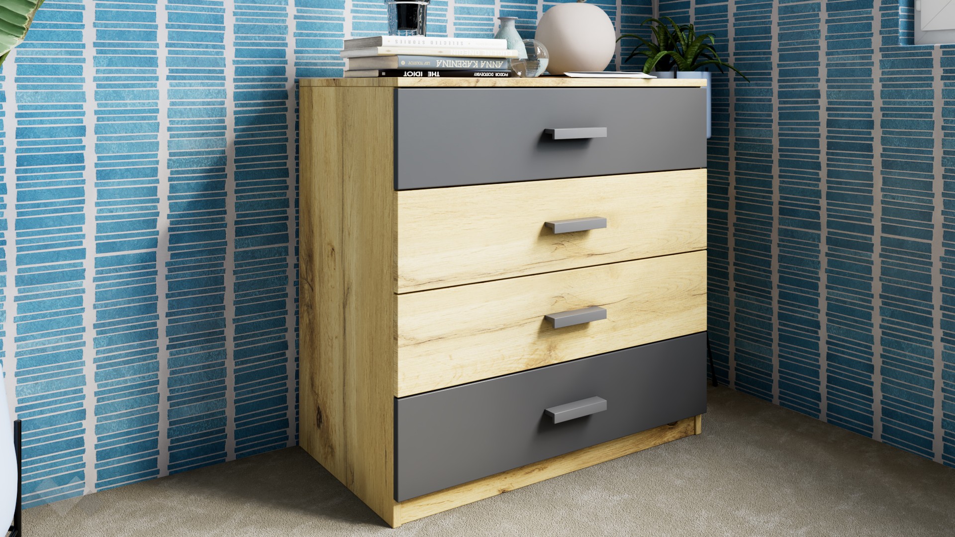 Благодарение на 4-те чекмеджета, разполагаш с достатъчно място за организация на всякакви вещи и дреболии. Плотът е разположен по-ниско, за да можеш да използваш и него като рафт.