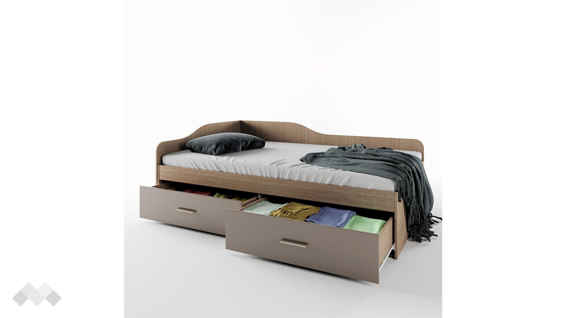 Легло с чекмеджета Марс е достатъчно просторно, за да ти предостави необходимия комфорт за сън. Подходящо е за матрак с размер 120/190 см. Благодарение на двете чекмеджета в долната част имаш допълнително място за съхранение за спално бельо, дрехи, завивки, възглавници или други необходими за теб вещи. Добавените табли осигуряват пълна изолация от заобикалящите го стени, така че когато си легнеш ще усещаш единствено комфорта на матрака и мекотата на завивките.