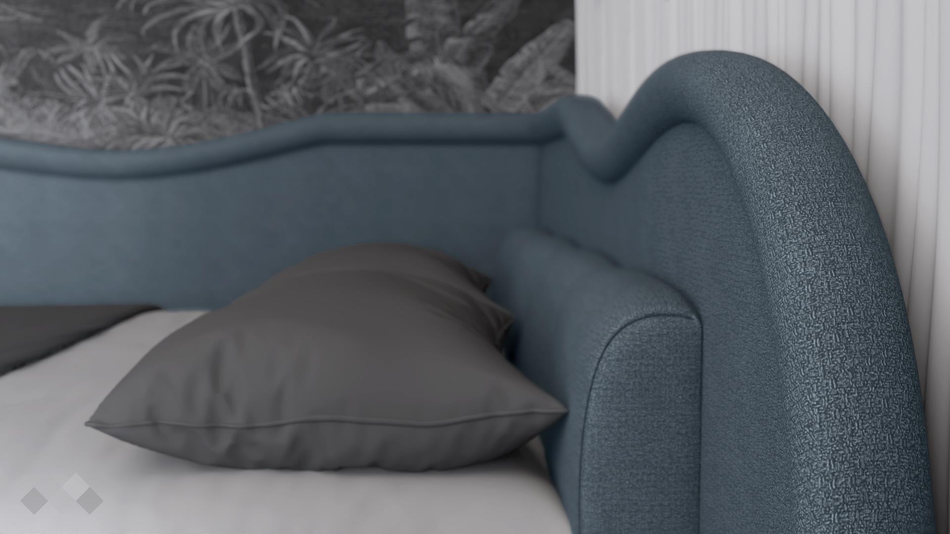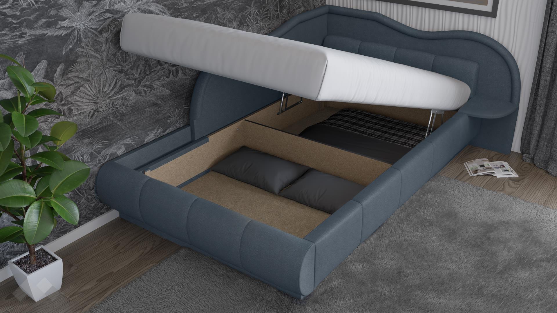 Леглото е с меки форми и елегантен дизайн. Подходящо е за матрак 120/190 см. Под матрака се открива широко пространство, готово да побере всички възглавници и завивки, на които все не намираш място. Така не се налага да закупуваш допълнителни шкафове у дома и пестиш пространство и пари.