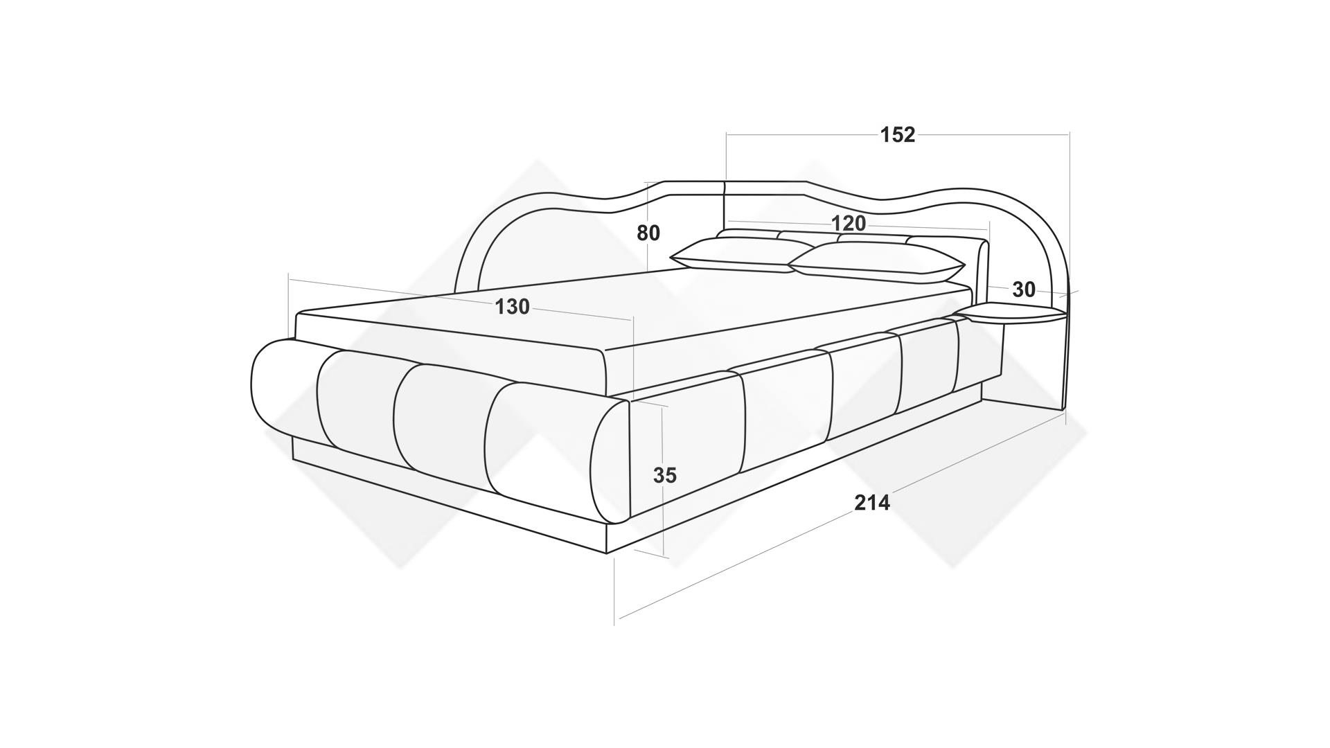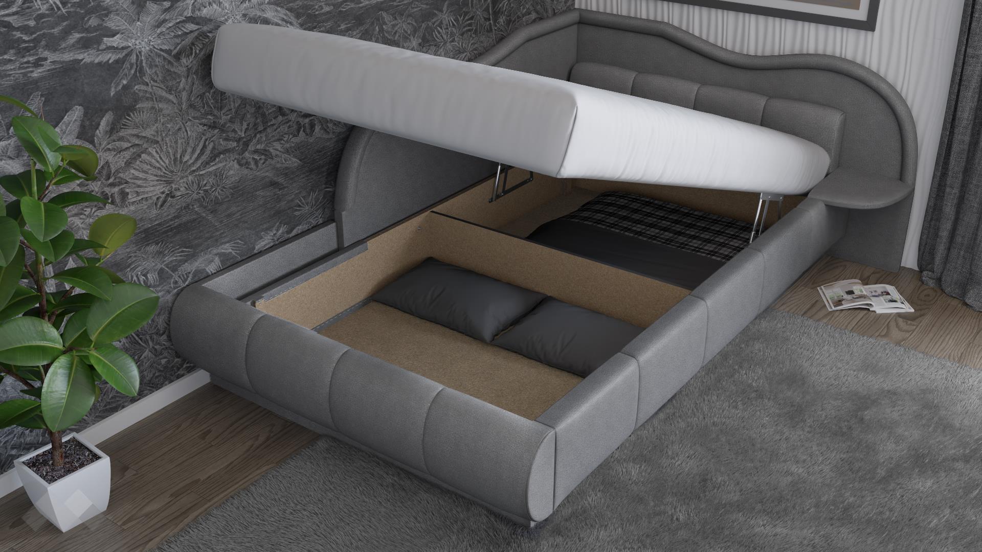 Леглото е с меки форми и елегантен дизайн. Подходящо е за матрак 120/190 см. Под матрака се открива широко пространство, готово да побере всички възглавници и завивки, на които все не намираш място. Така не се налага да закупуваш допълнителни шкафове у дома и пестиш пространство и пари.