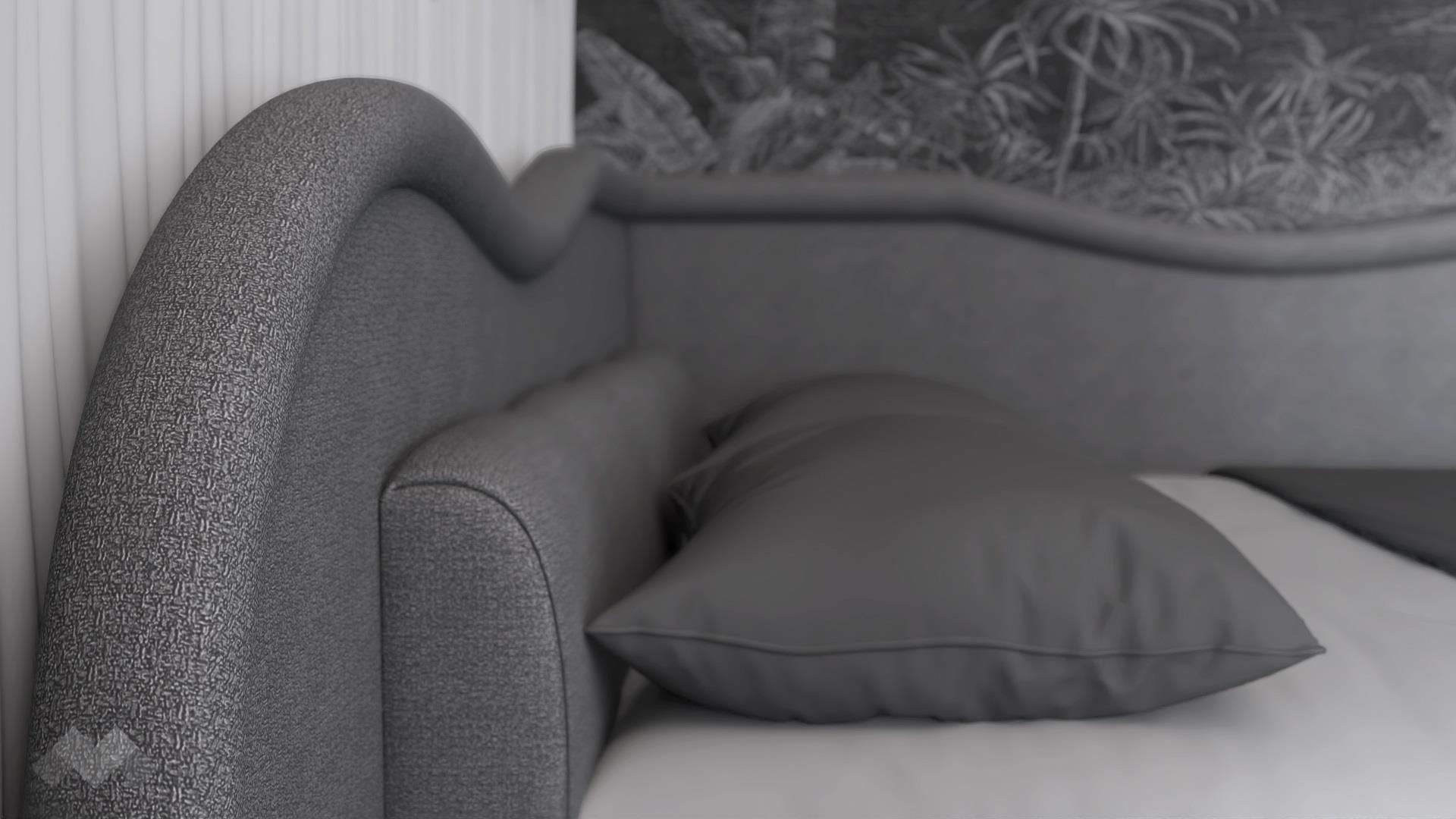 Леглото е с меки форми и елегантен дизайн. Подходящо е за матрак 120/190 см. Под матрака се открива широко пространство, готово да побере всички възглавници и завивки, на които все не намираш място. Така не се налага да закупуваш допълнителни шкафове у дома и пестиш пространство и пари.
