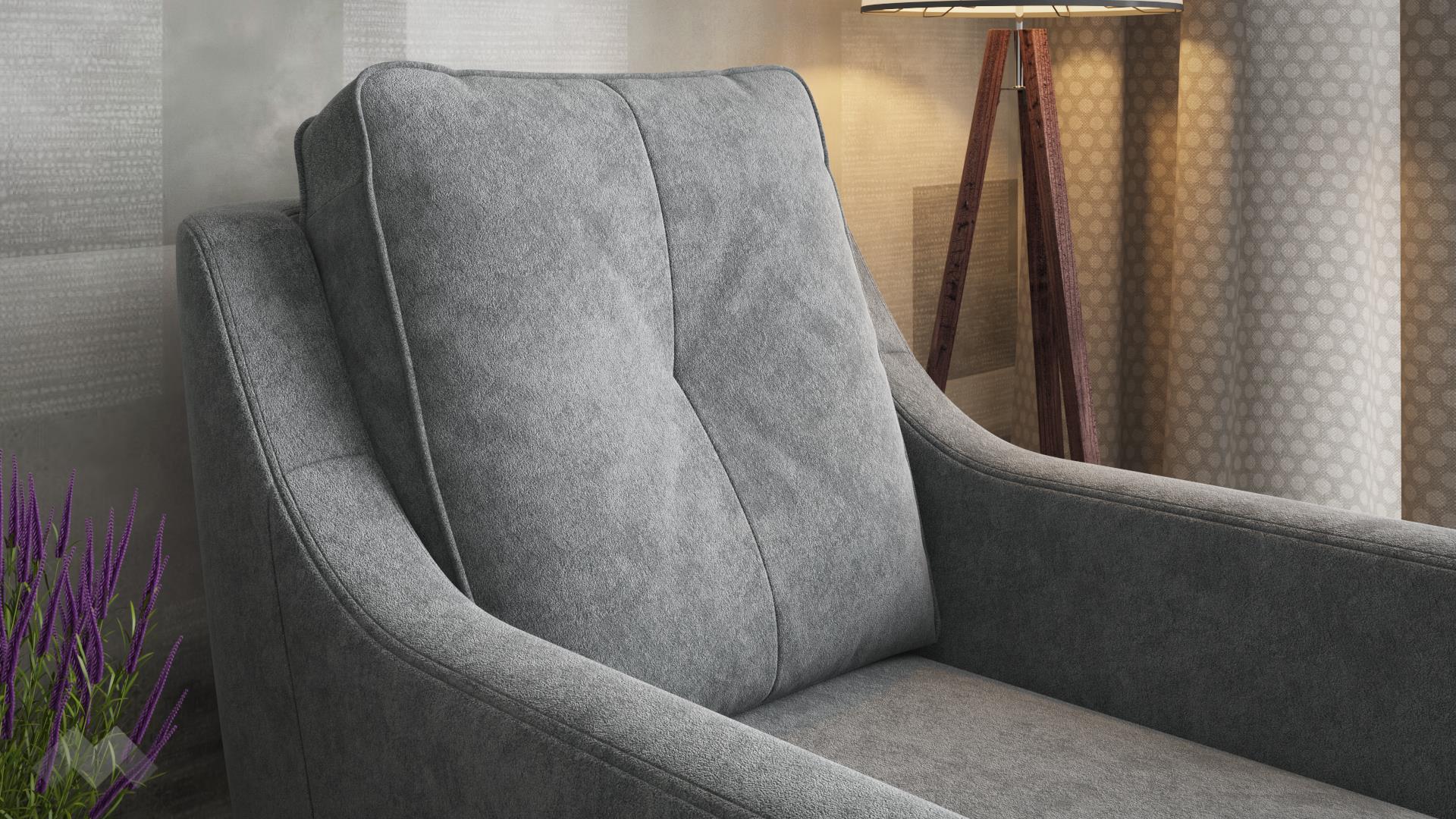 Моделът се отличава със стабилна конструкция от масивна дървесина и зиг-заг пружини. Седалката е с вложен пенополиуретан с височина 12 см, който гарантира оптимален комфорт и мекота при сядане.