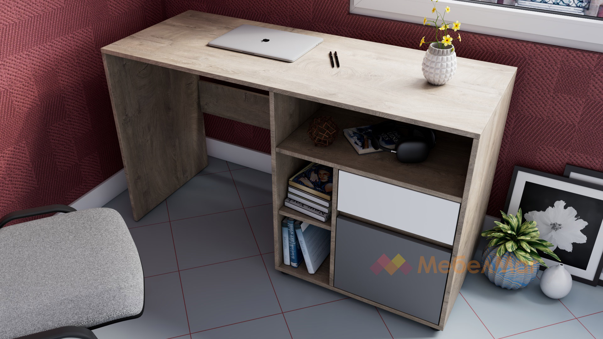 Бюрото разполага с широк плот, три отворени рафта и два затворени шкафа. Плотът е достатъчно широк, за да можеш да поставиш лаптоп или настолен компютър, но и в същото време ще остане място за писане на домашни. Благодарение на умелия дизайн, всичко е на една ръка разстояние – в отворените и затворени пространства ще намерят съхранение всички учебни помагала и пособия, както и други необходими за детето вещи.