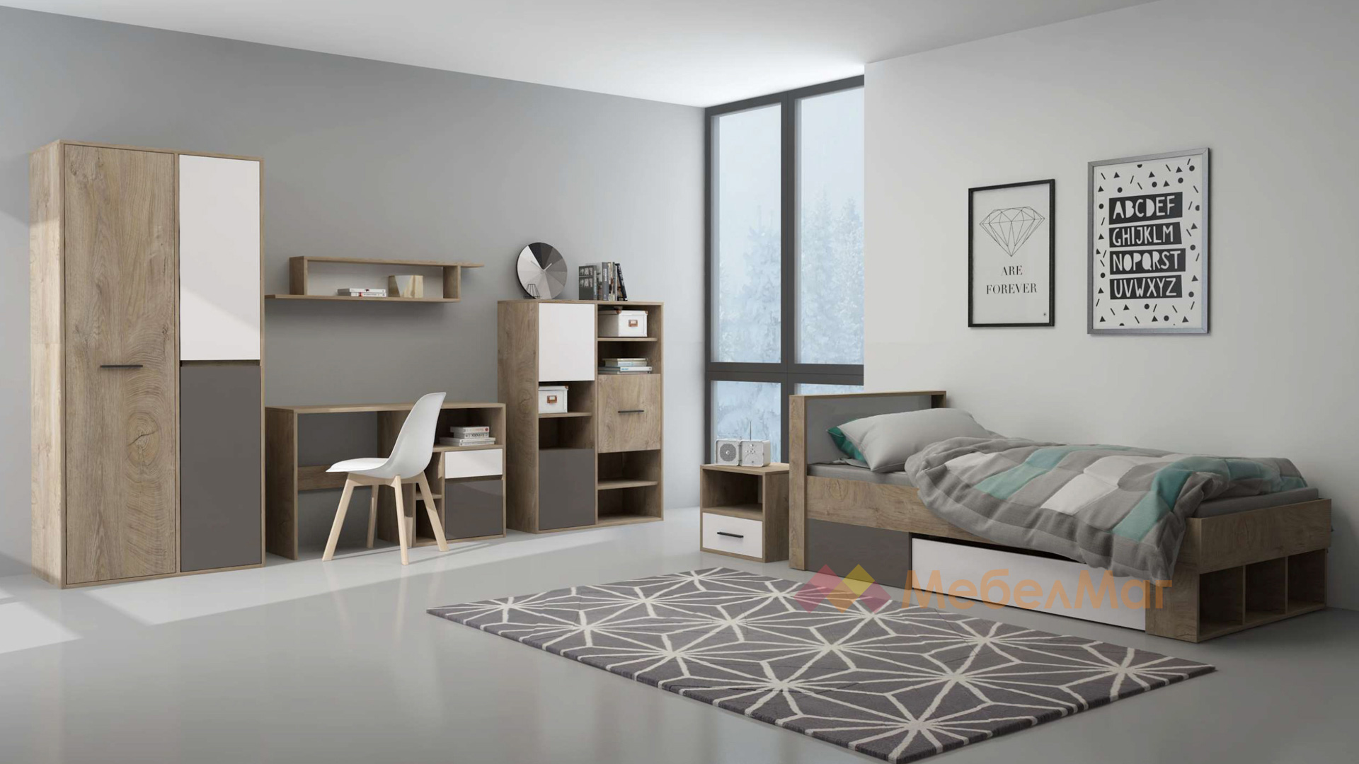 Цвят: дъб суров с бяло и кобалтово сиво
