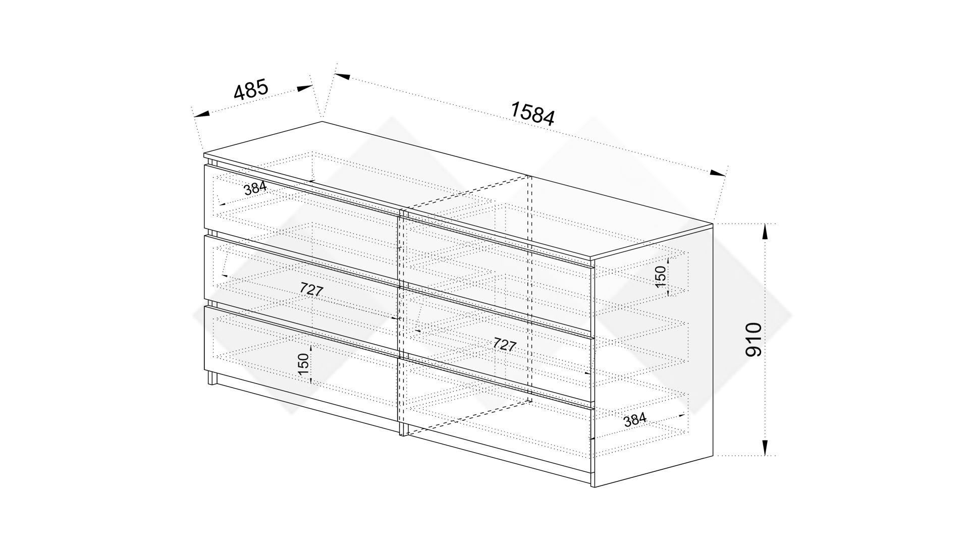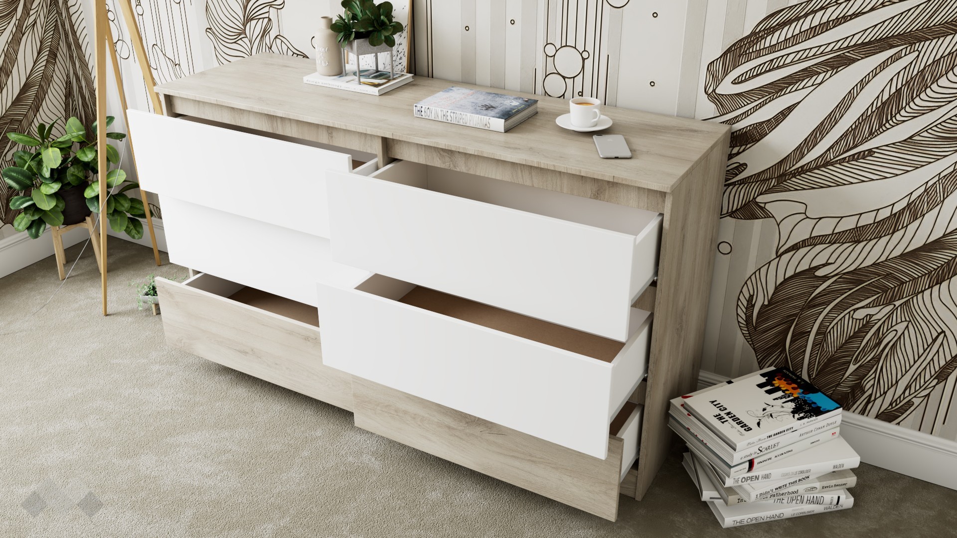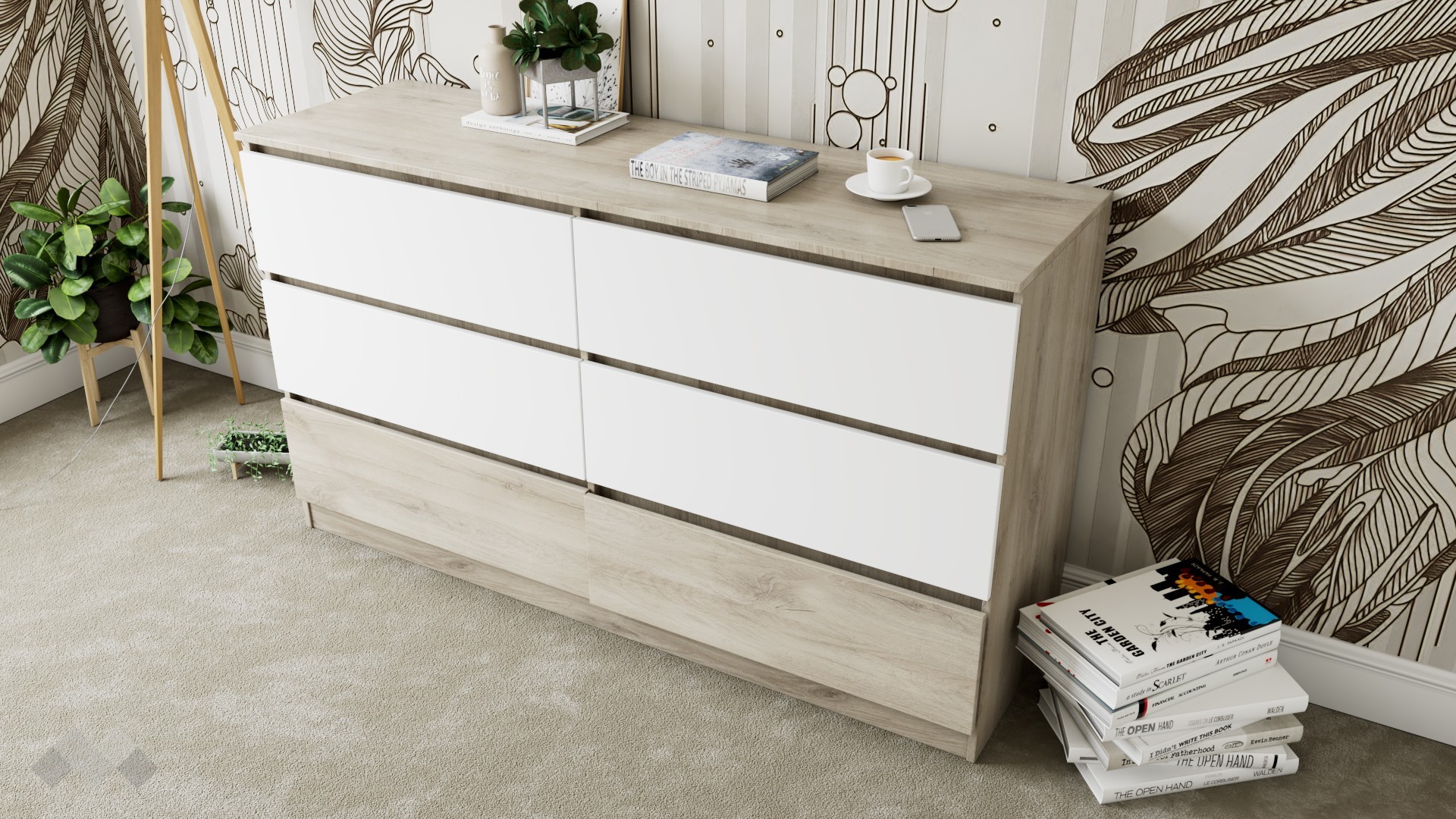 На твое разположение са шест просторни чекмеджета, в които можеш да организираш сгънати дрехи, бельо, аксесоари, малки ел.уреди или други необходими за теб неща. Плотът отгоре е идеален за подреждане на книги, козметика или други вещи, които искаш да ти бъдат винаги под ръка.