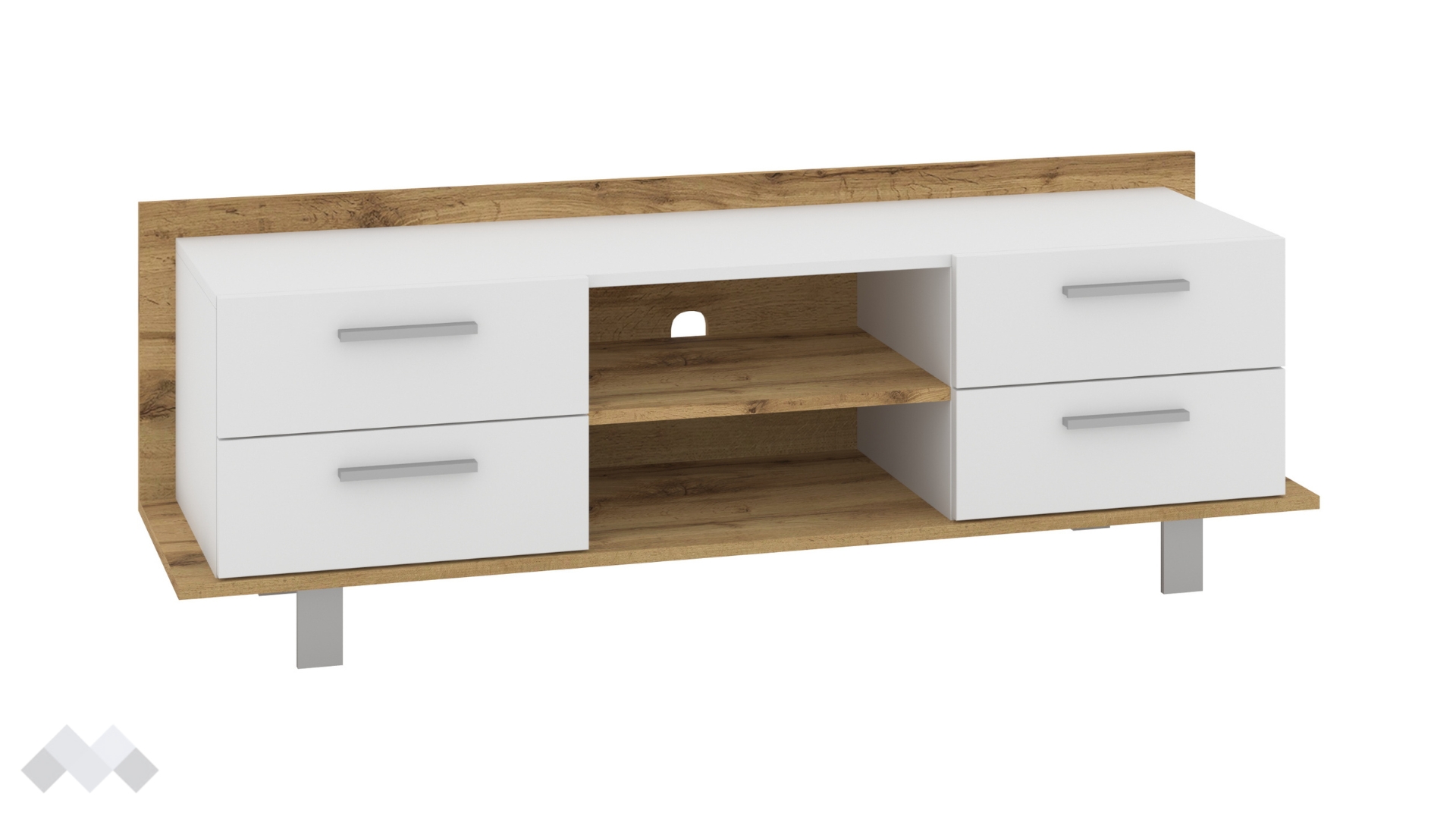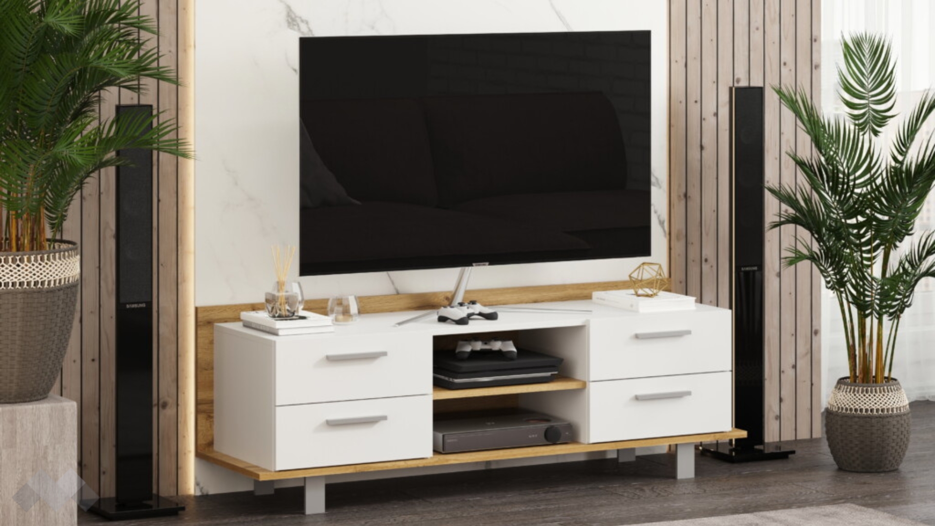 ТВ шкаф Модика се състои от 4 чекмеджета, рафт и удобен плот, на който можеш да поставиш своя телевизор. Рафтът в средата е чудесно място за любимите ти книги, сувенири и декорации. В чекмеджетата можеш да организираш всички вещи, които искаш да останат скрити, или техника, която не използваш толкова често, но в същото време ще ти е винаги под ръка.