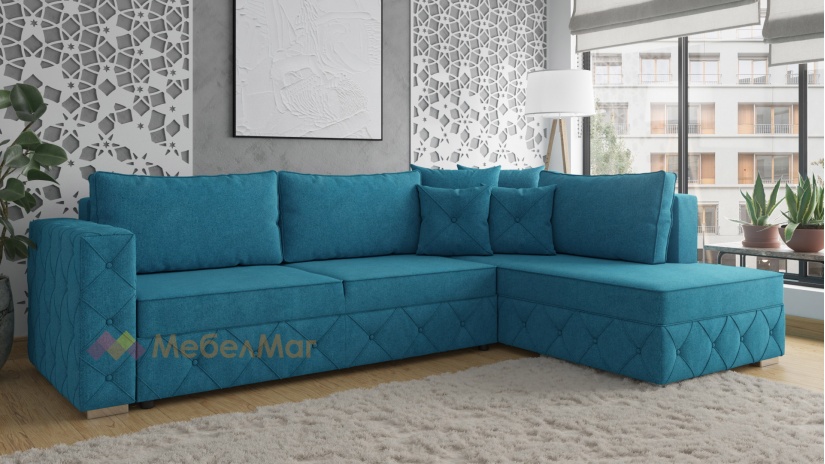 Ъглов диван Нептун пристига с три големи, удобни облегални възглавници за комфорт и основа, осигуряваща оптимална опора за тялото. Дамаската е от висококачествен текстил, приятна на допир и в стилни цветове.