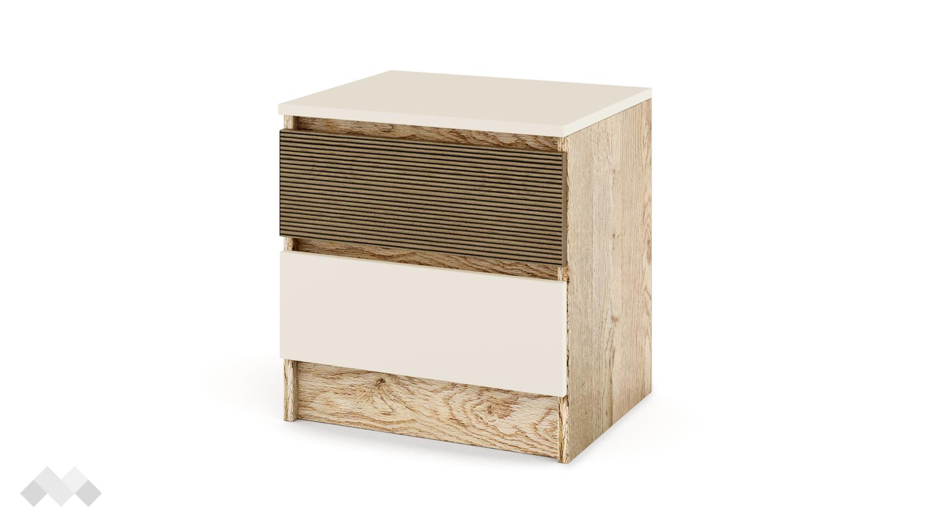 Малък, но практичен, с оптимална височина, пасва буквално на всяко легло. Благодарение на двете чекмеджета, разполагаш с достатъчно място за организация на всякакви вещи и дреболии. Плотът е разположен по-ниско, за да можеш да използваш и него като рафт.