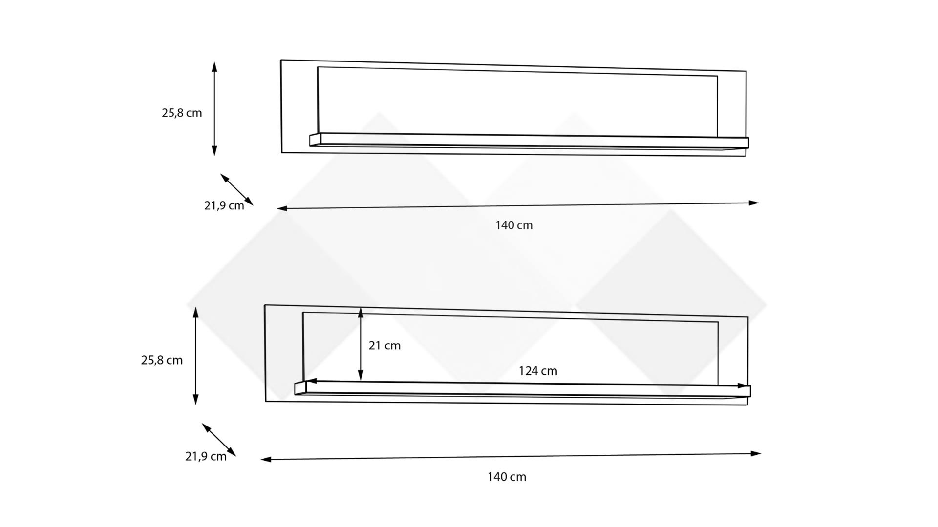 Д: 140 см Ш: 21,9 см В: 25,8 см