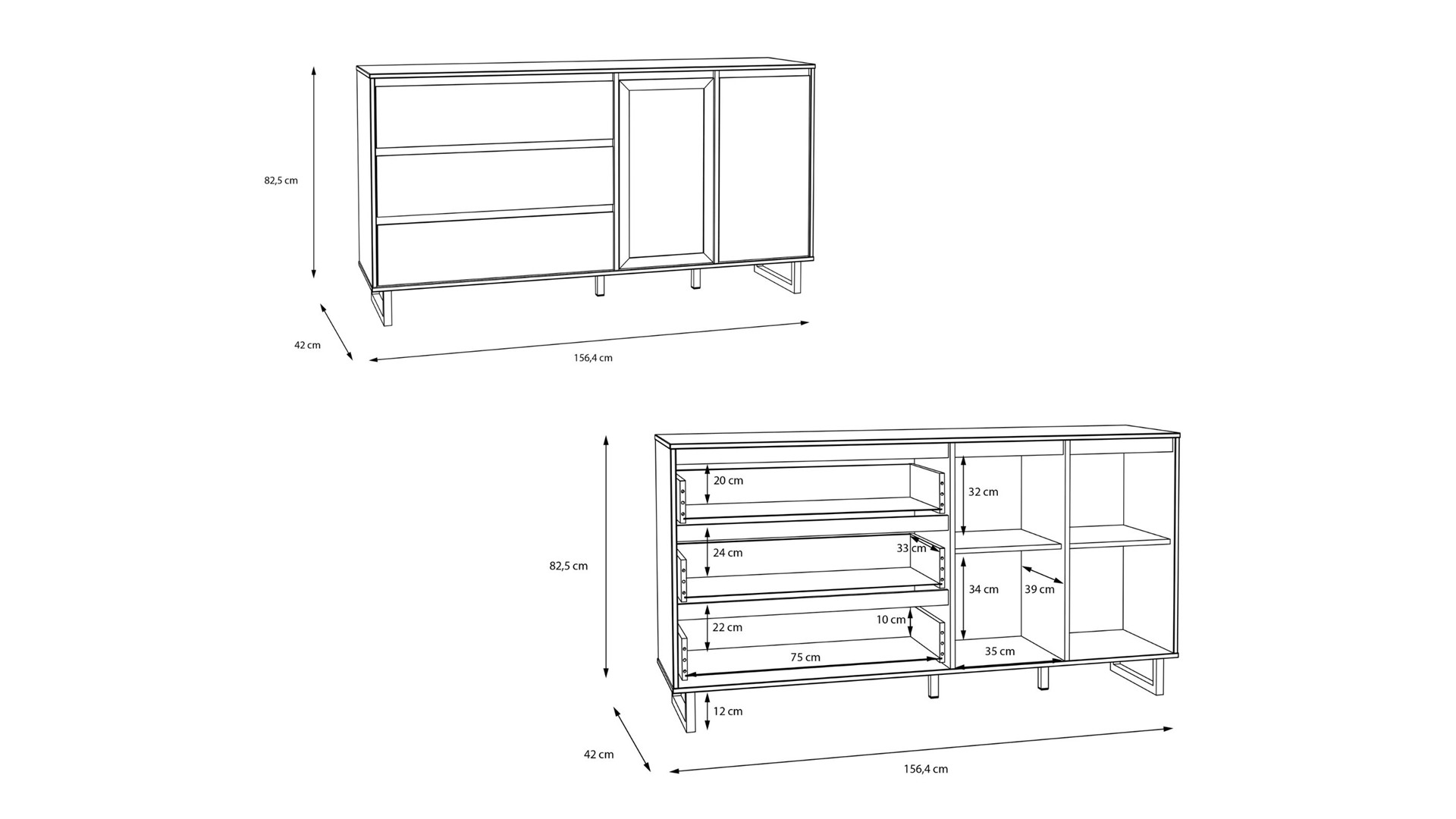 Д: 156,4 см Ш: 42 см В: 82,5 см