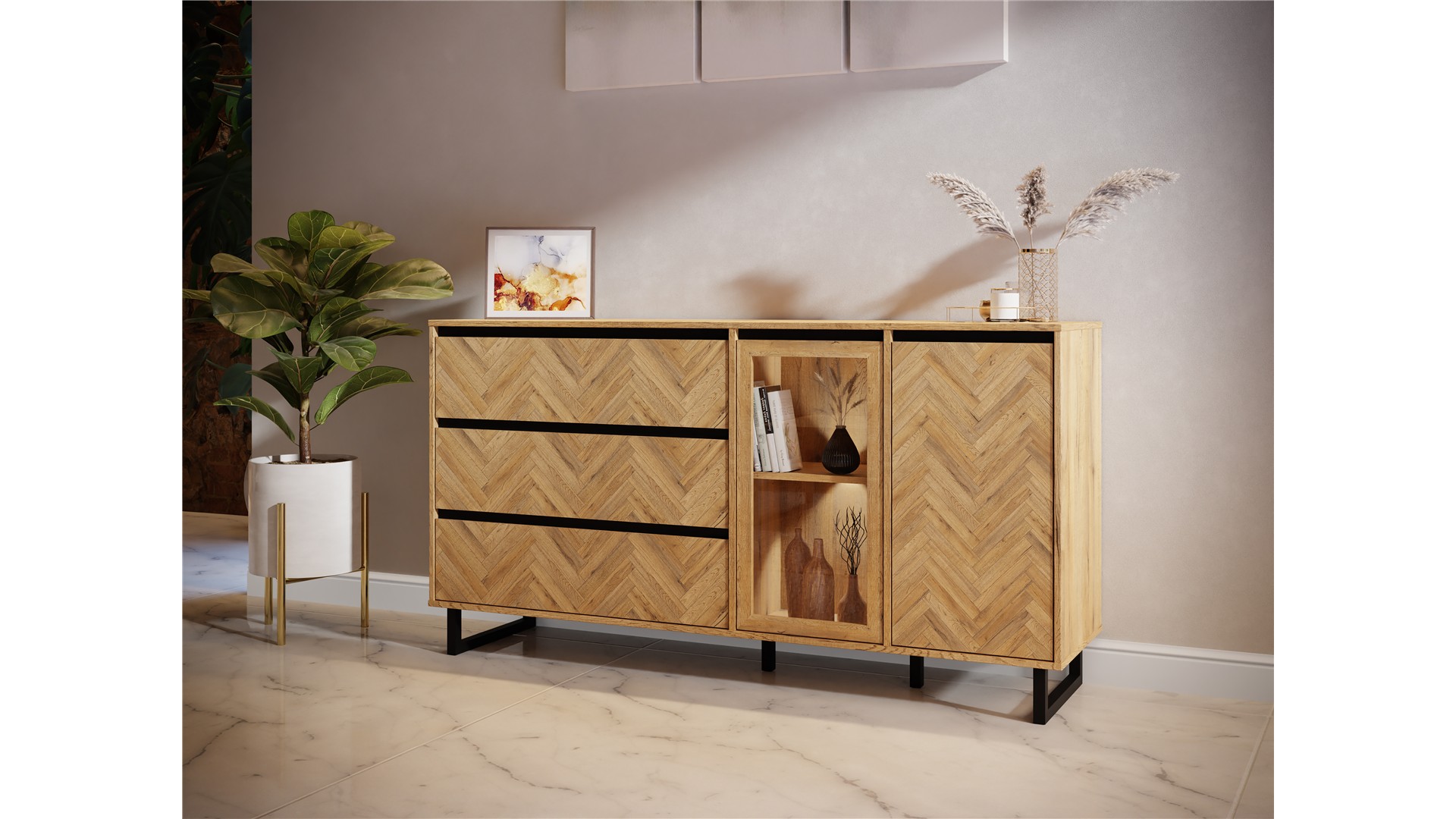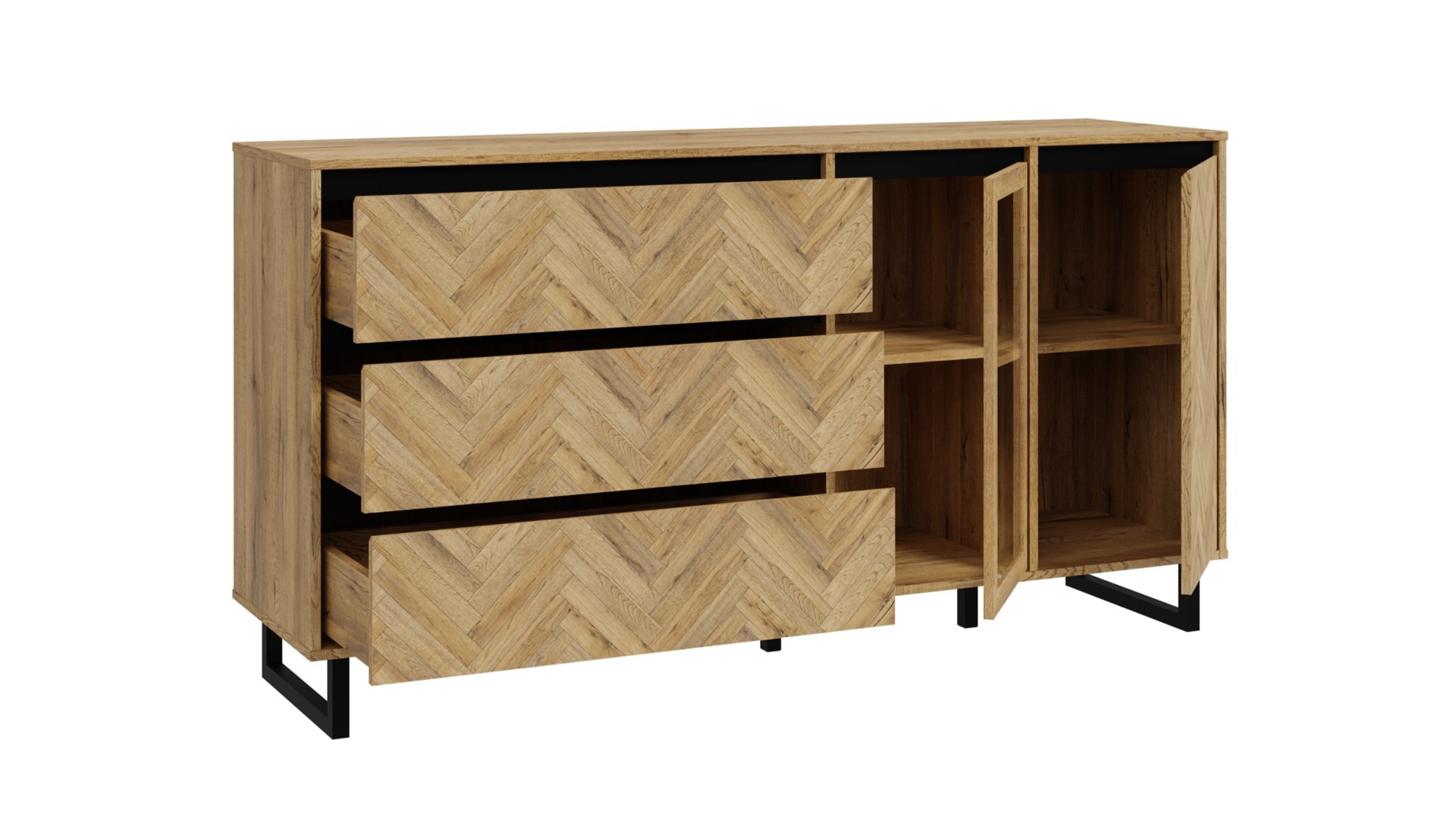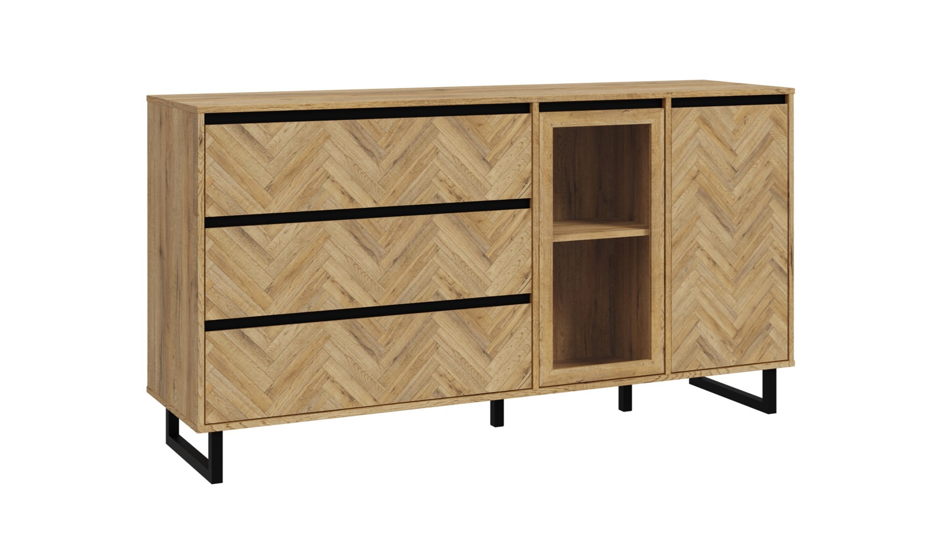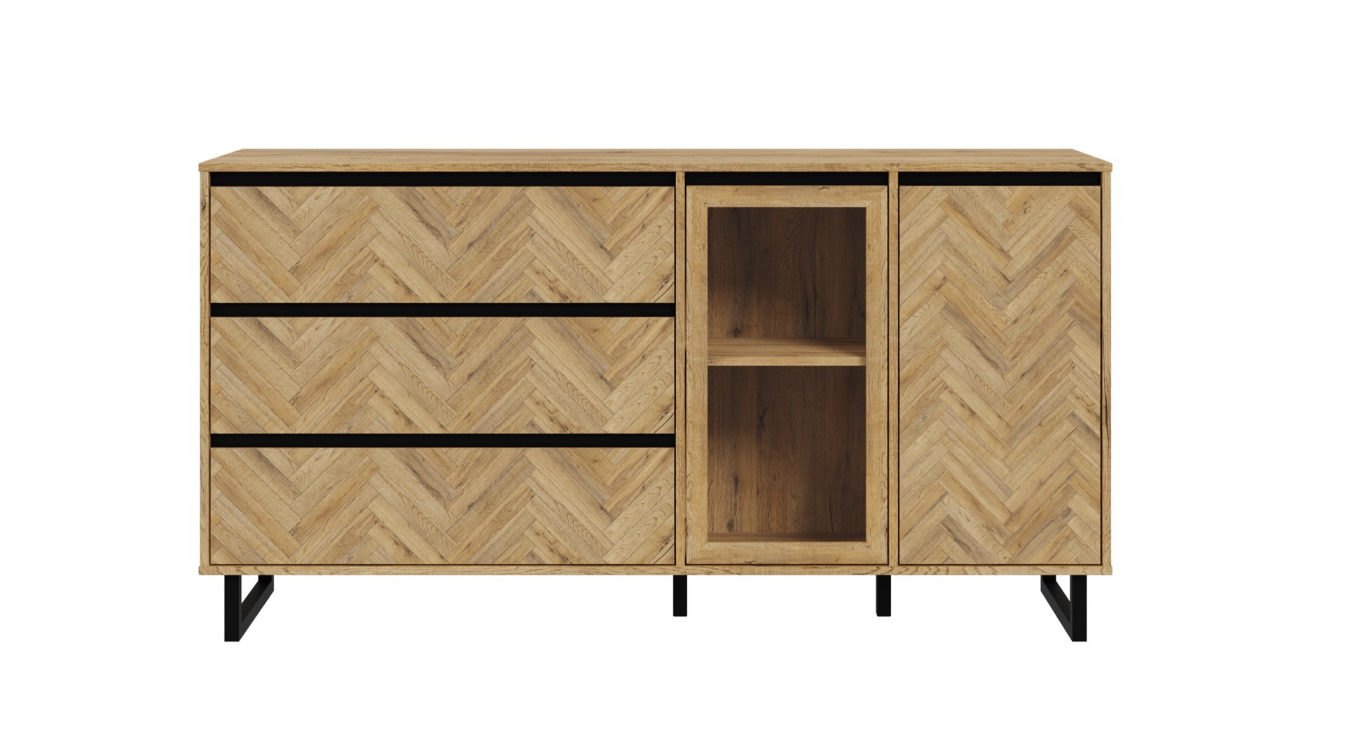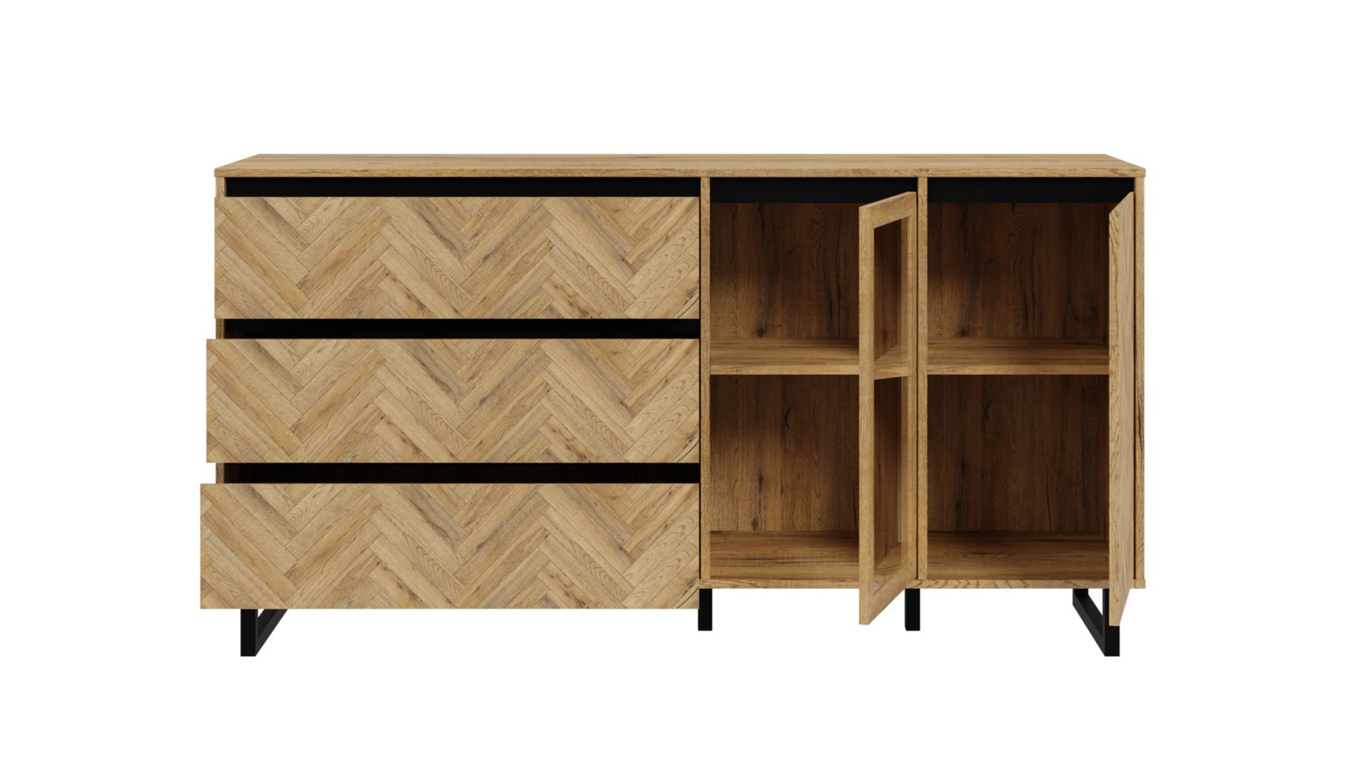 ⭐ Предимства: ✓ 3 чекмеджета ✓ 2 врати ✓ телескопични водачи ✓ витрина ✓ разделение с 1 рафт ✓ стилен и практичен дизайн ✓ здрава конструкция ✓ 15 мм ПДЧ