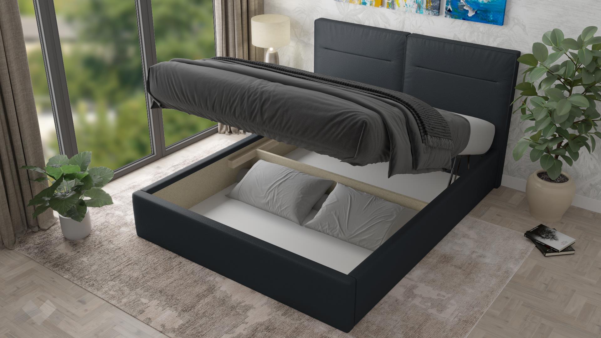 Спалнята ще ти осигури необходимото пространство за спокоен и комфортен сън. Тя е подходяща за матрак с размер 160/200 см. Таблата е с оптимална височина, мека и удобна за облягане при четене на книга или гледане на телевизия. Благодарение на включения повдигащ механизъм, в пространството под матрака можеш да съхраняваш завивки, възглавници, спално бельо или дрехи. Това е безценно предимство при по-малките жилища, където всеки сантиметър е от значение. Допълнителният делител на подматрачното пространство прави организацията на вещите още по-лесна.