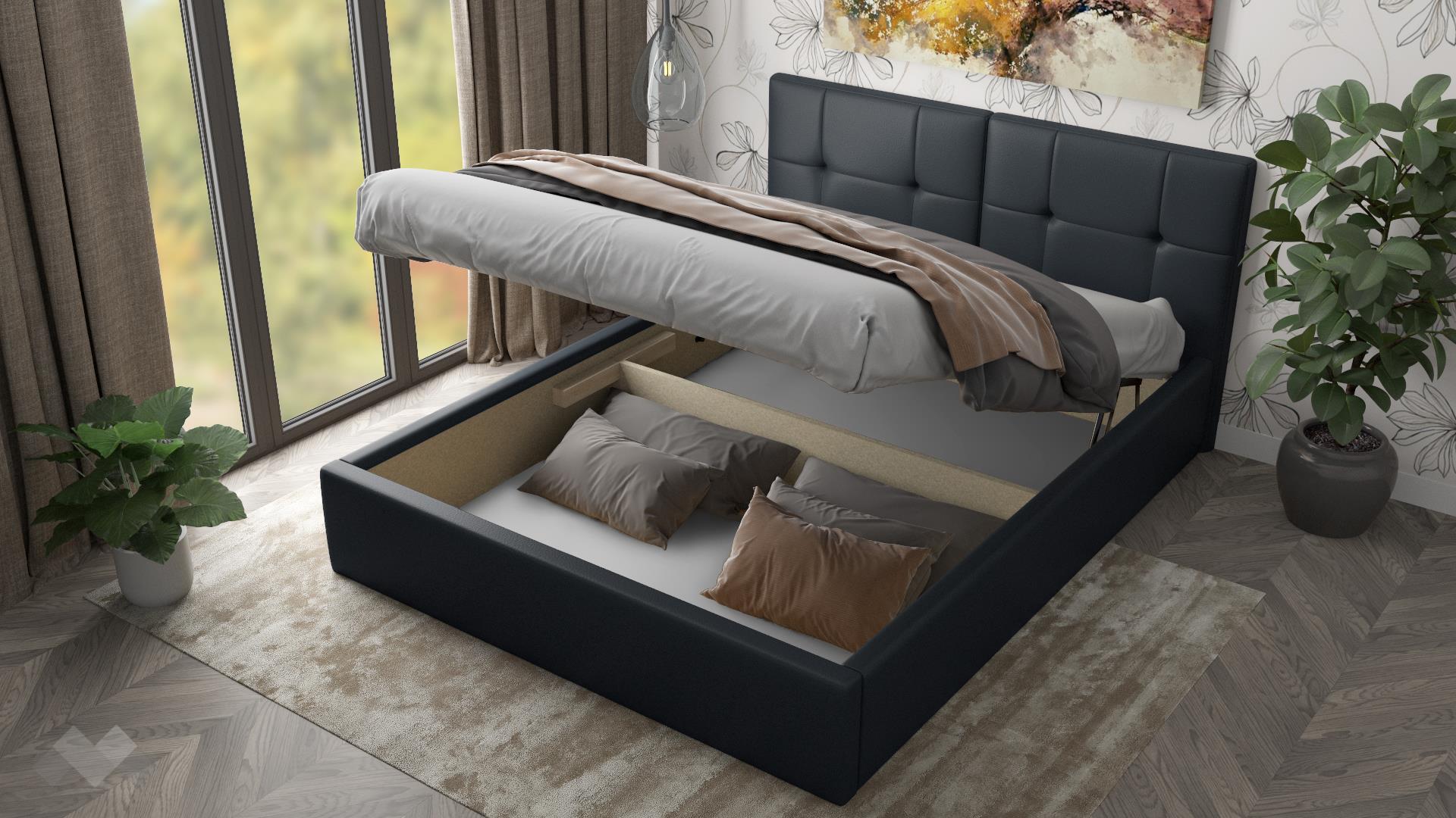 Тапицирана спалня Ния е с идеалните размери – подходяща е за матрак с размер 160/200 см. Включеният повдигащ механизъм повдига матрака и открива широко пространство, готово да побере всички възглавници и завивки, на които все не се намира място. Допълнителният делител на подматрачното пространство прави организацията на вещите още по-лесна.