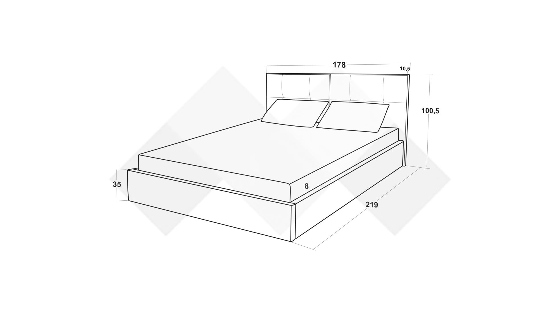 Д: 219 см. Ш: 178 см. В: 100.5 см.