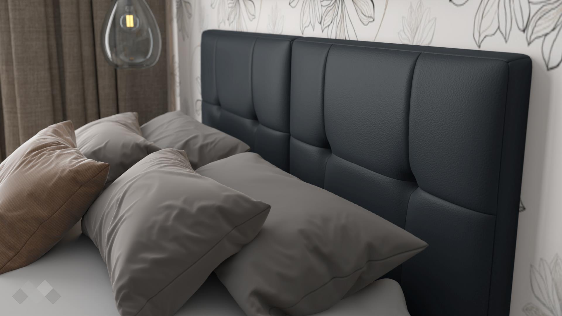 Таблата и основата са тапицирани в приятна на допир еко кожа. Това ти дава възможност да се облегнеш без да ти е необходима допълнителна възглавница, а декоративните шевове допринасят за елегантната визия на спалнята.