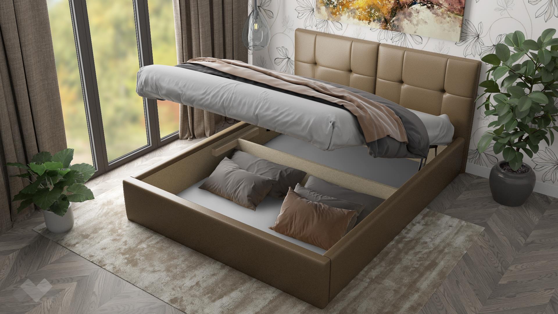 Тапицирана спалня Ния е с идеалните размери – подходяща е за матрак с размер 160/200 см. Включеният повдигащ механизъм повдига матрака и открива широко пространство, готово да побере всички възглавници и завивки, на които все не се намира място. Допълнителният делител на подматрачното пространство прави организацията на вещите още по-лесна.