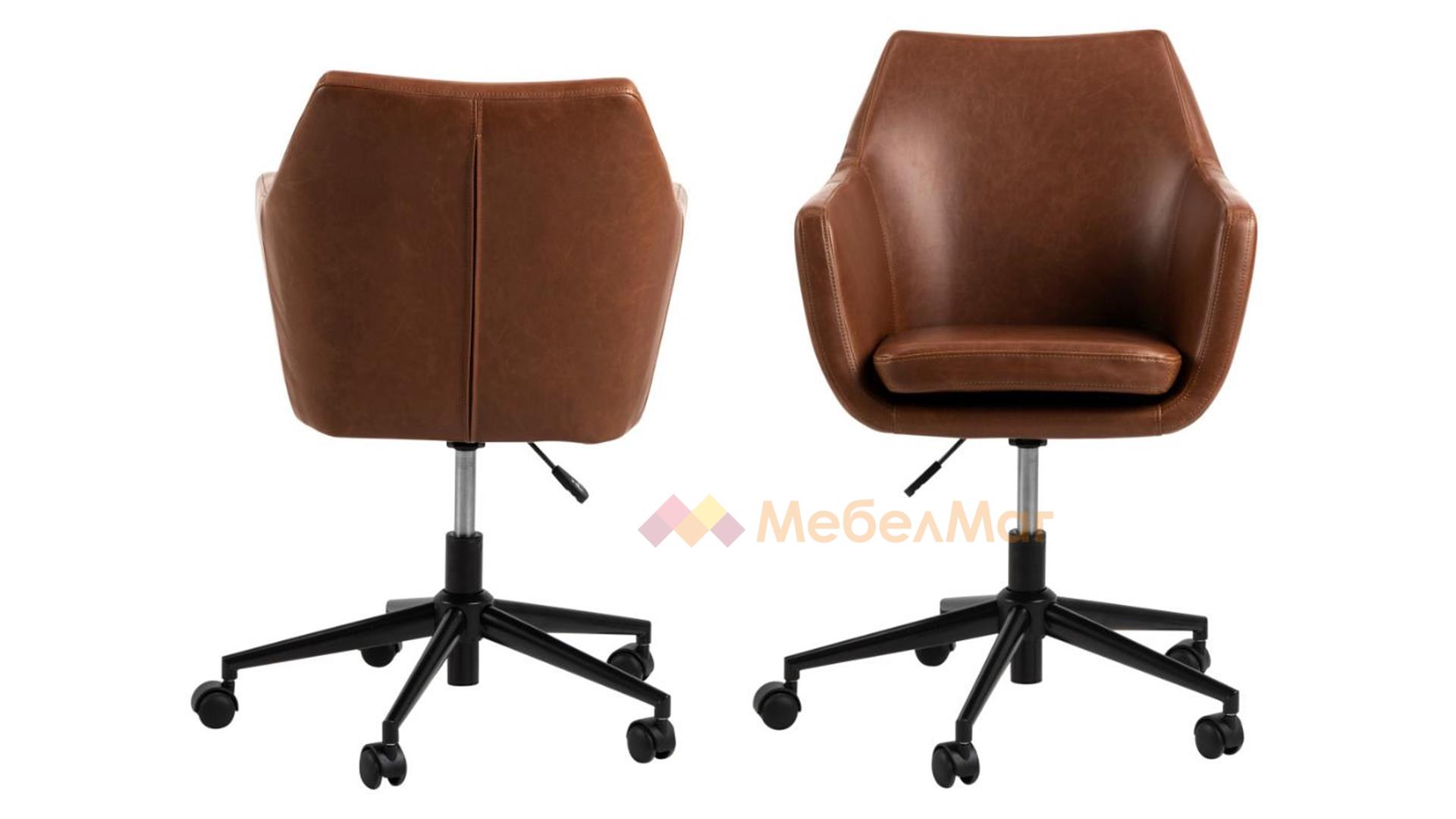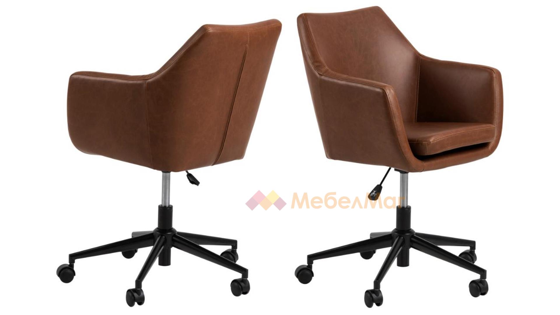 Офис стол Нора предлага съвременен стил с класически силует за вашия домашен офис. Има удобна седалка, тапицирана с изкуствена кожа, с вдлъбнати подлакътници, което прави този стол идеален за продължителна работа.