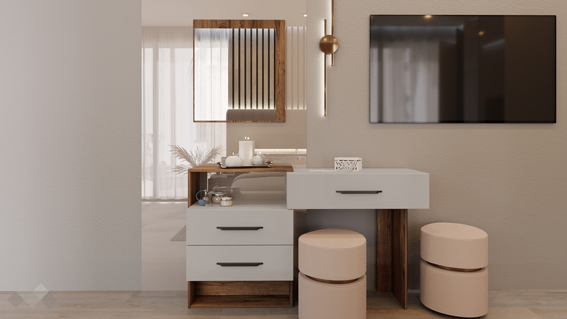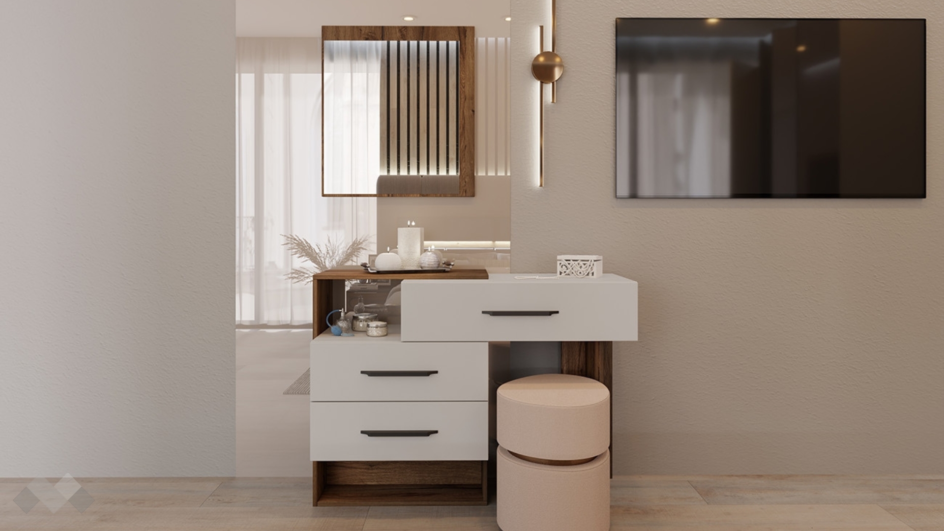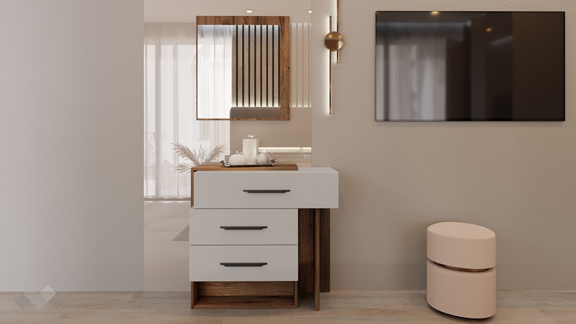 Поглези себе си и преобрази своята спалня с тоалетка Норел, която ще създаде неустоимо усещане за лукс и комфорт в твоята стая. Интересният дизайн на модела е глътка свежест, която ще разчупи интериора на спалнята ти и ще внесе стил и елегантност, създавайки атмосфера на изтънченост и уют.